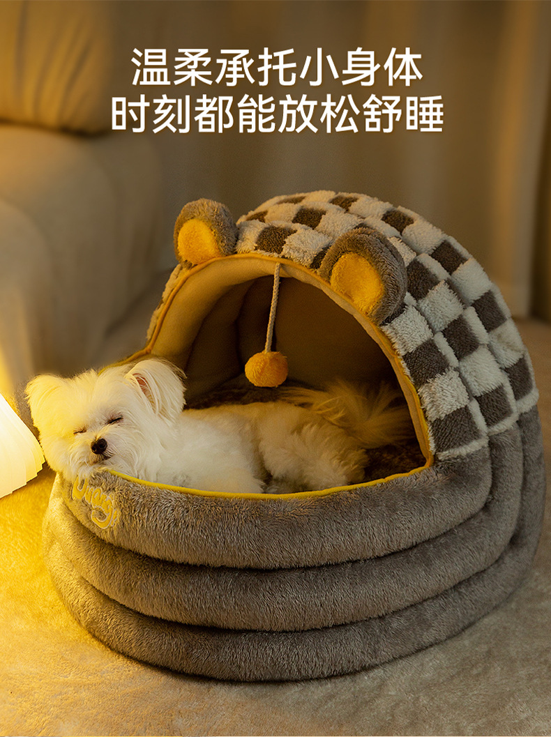 秋冬款狗狗立体小熊弧形房子窝保暖狗窝猫窝柴犬猫咪封闭式宠物窝