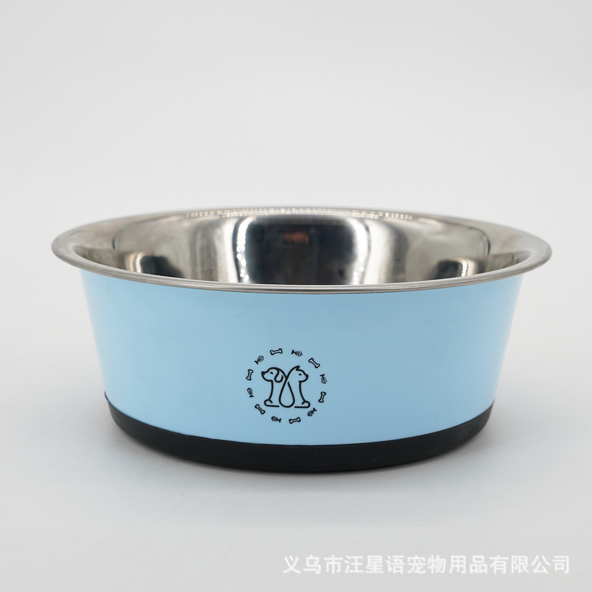 2024 새로운 발자국 스테인리스 대용량 개 그릇 먹이 물 미끄럼 방지 바닥 만화 애완 동물 그릇 도매스토어 가기