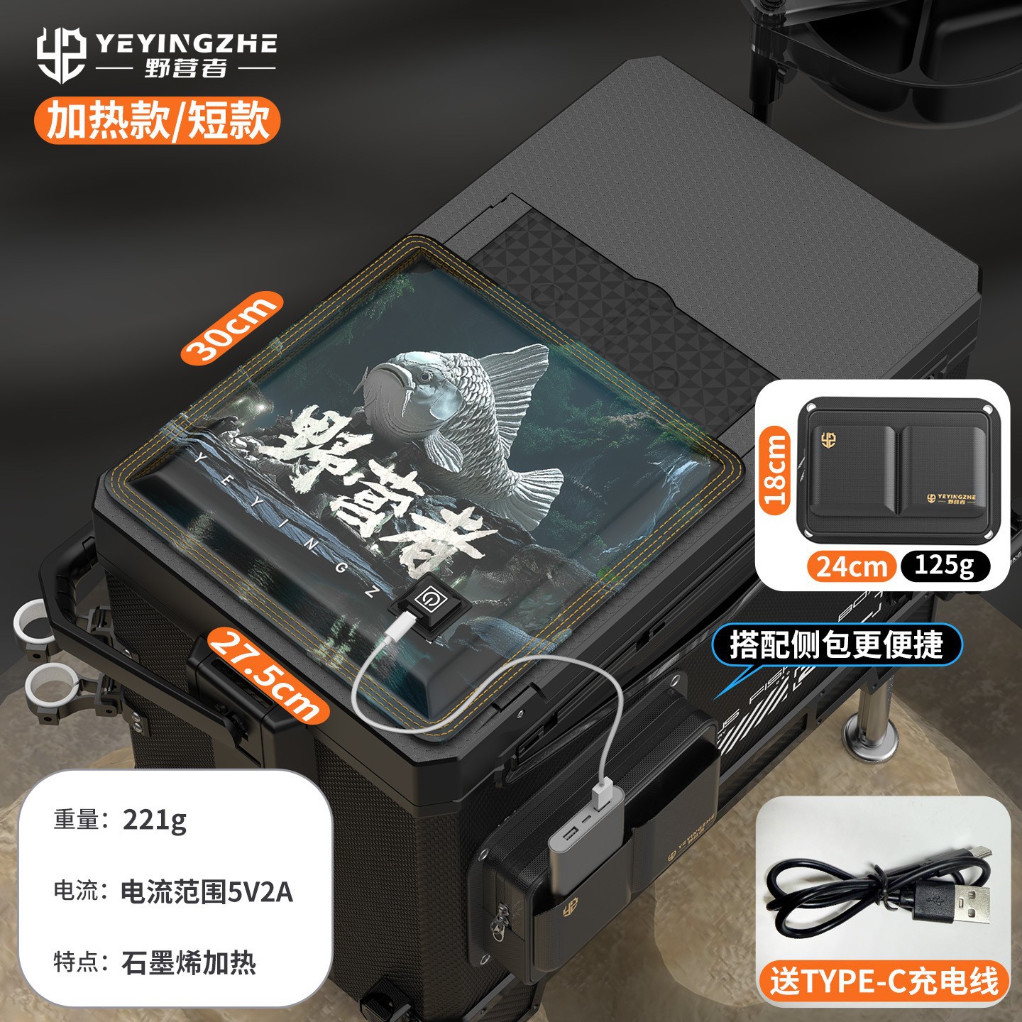 • 그래핀 발열 모델 《4세대 발열 설계》 소형 - 블랙 신화 + 낚시 박스 사이드백