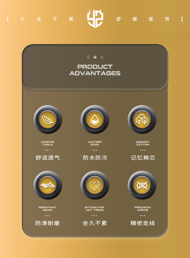 • PU 고품질 두께 강화 《2세대 경사 디자인》 중간 사이즈 - 블랙골드
