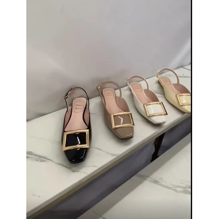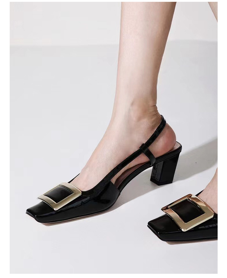 디핑판 25 가을 메탈 사각 버클 하이힐, 래커 마감 두꺼운 굽, 스트랩형 뒤트임 샌들, 여성 플랫힐