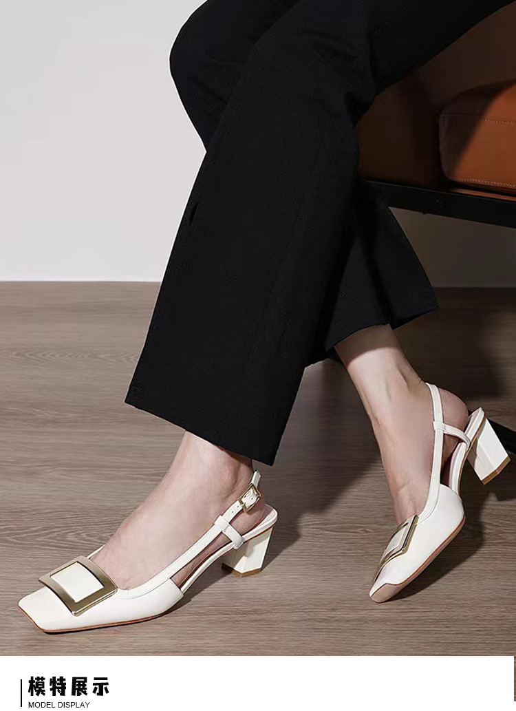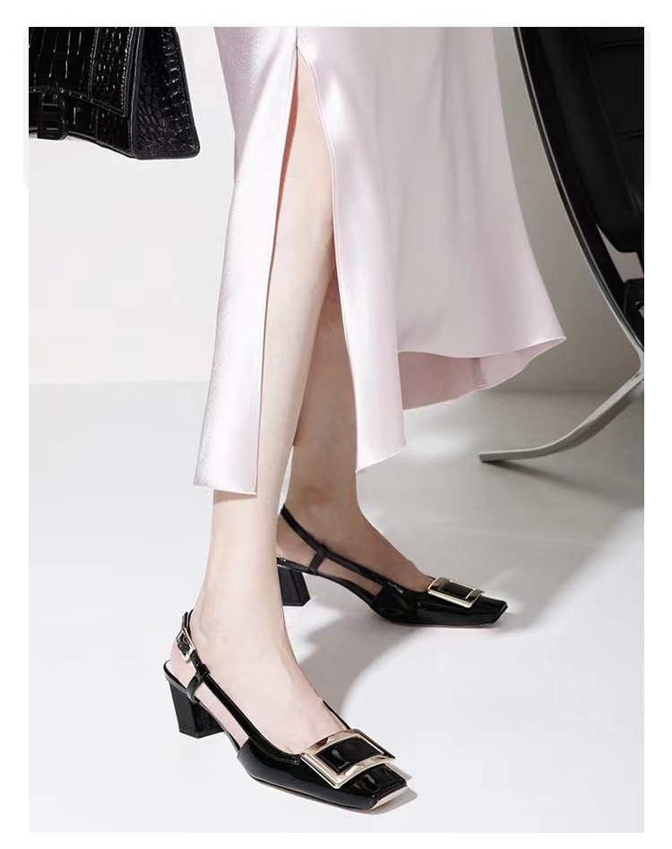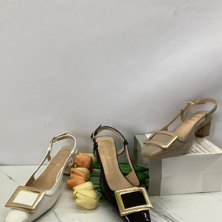 디핑판 25 가을 메탈 사각 버클 하이힐, 래커 마감 두꺼운 굽, 스트랩형 뒤트임 샌들, 여성 플랫힐스토어 가기