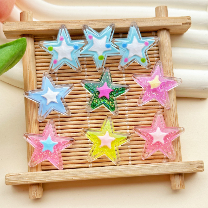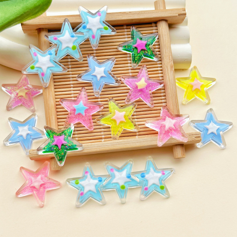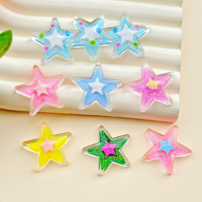 반짝이 다섯개 별 수지 diy 쥬얼리 액세서리 휴대 전화 케이스 구멍 신발 키 체인 패치 머리핀 헤어 액세서리 소재