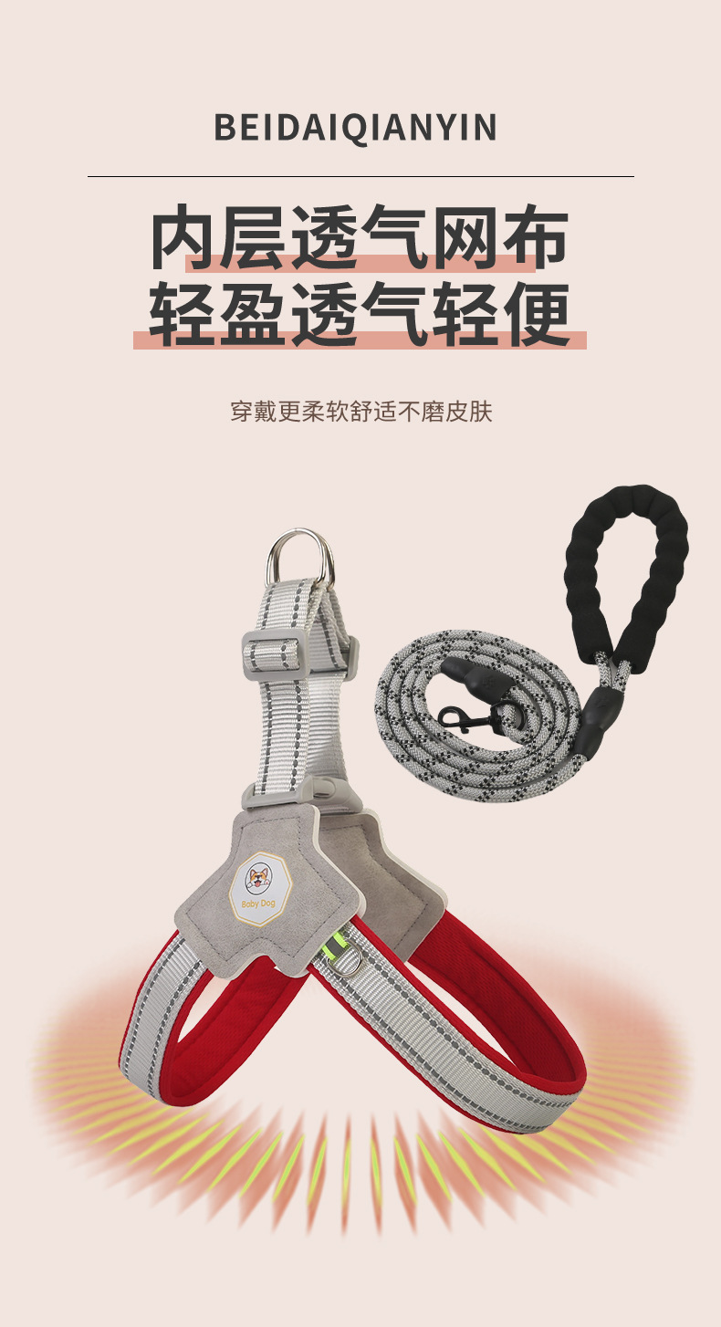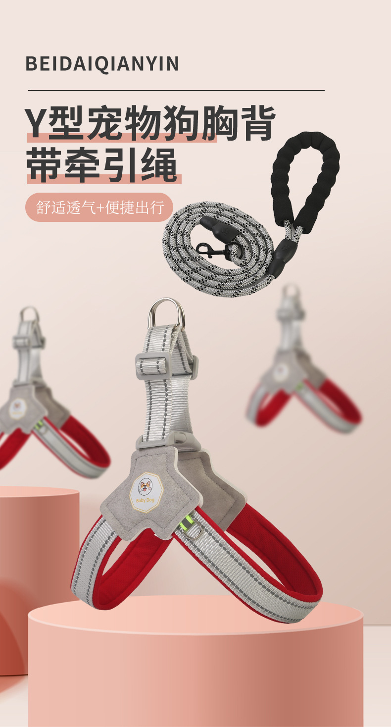 개 견인 밧줄 Y 유형 통기성 조끼 밤 반사 가슴 뒤로 개 걷는 밧줄 중간 개 코기 아웃 개 체인스토어 가기