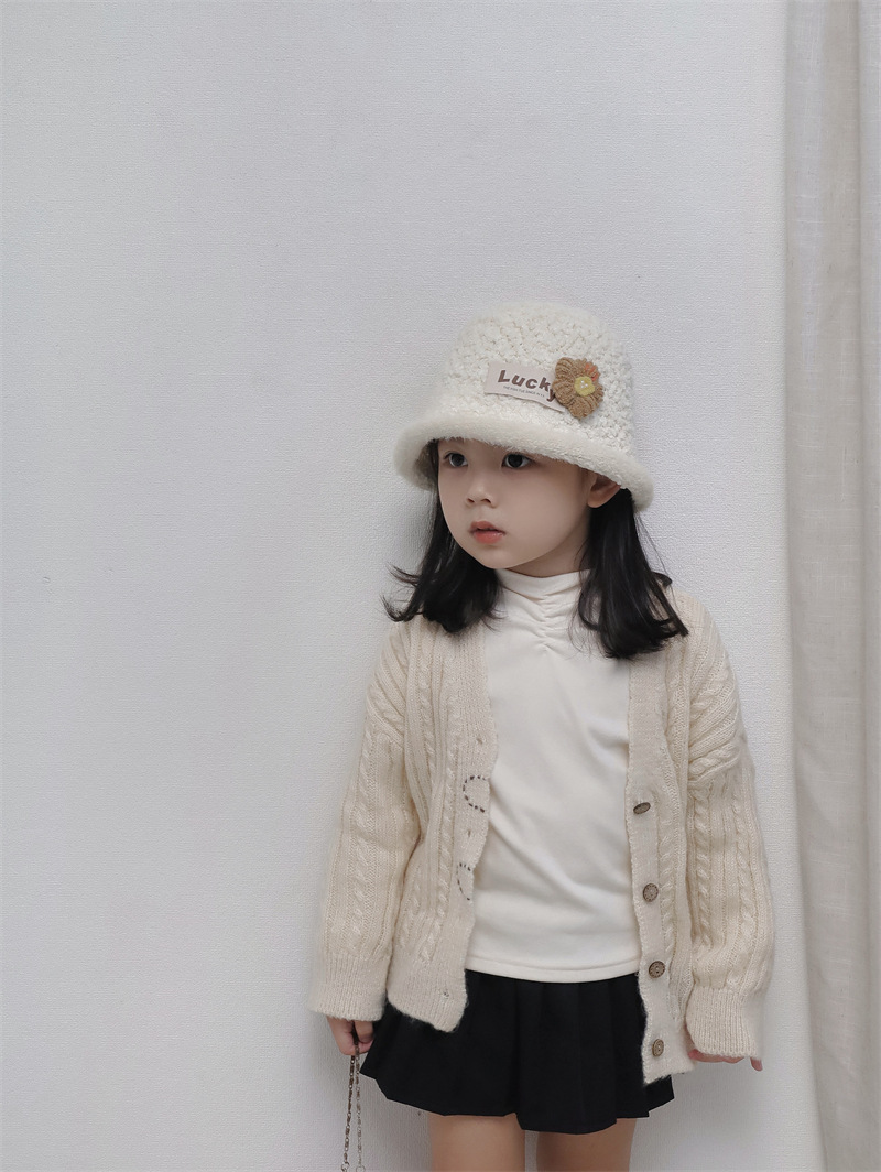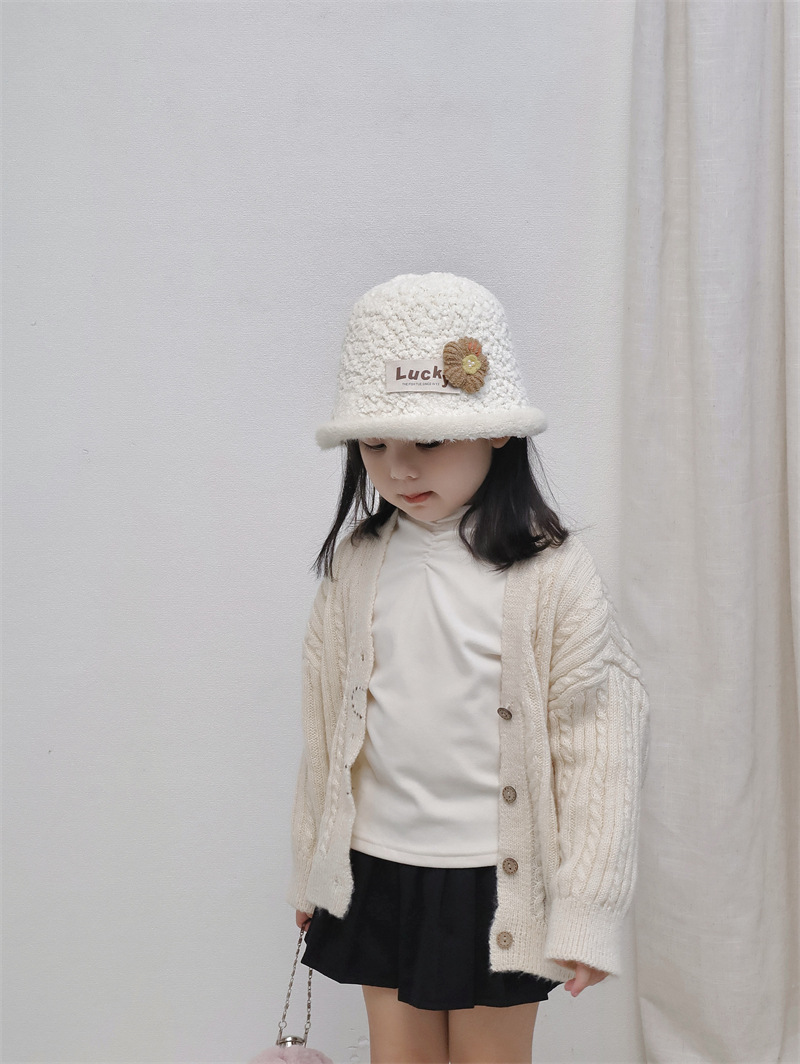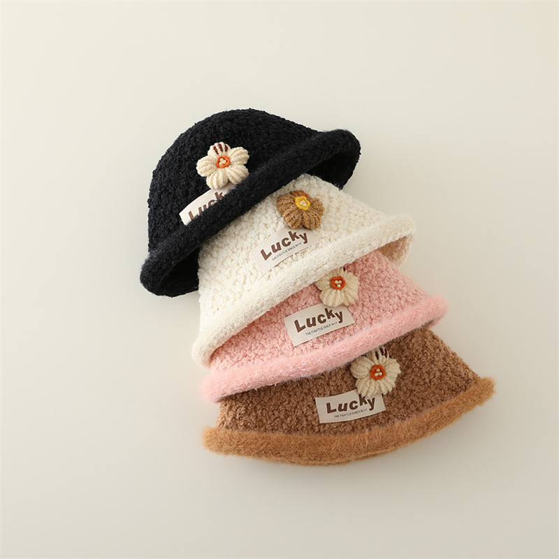 가을과 겨울 2024 새로운 스타일의 세련된 플러시 따뜻한 소녀 모자 컬링 아기 분지 모자 어린이 어부 모자스토어 가기