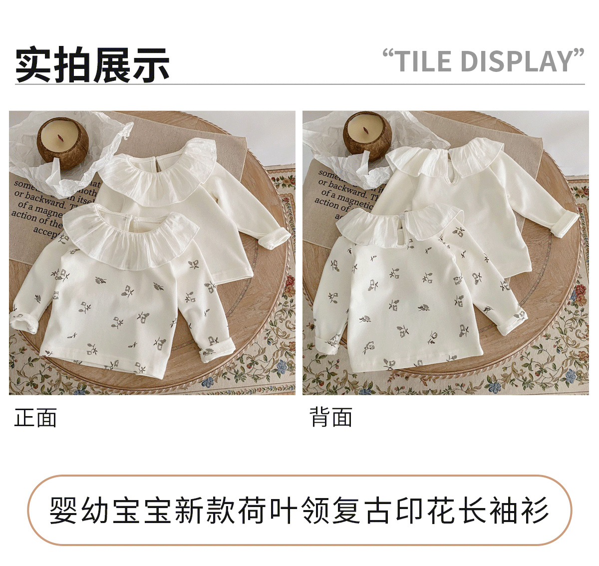 가을 소녀의 연꽃 칼라 긴팔 티셔츠 아기 소녀 아기의 봄과 가을베이스 셔츠 어린이 서양식 탑 아동복 T스토어 가기