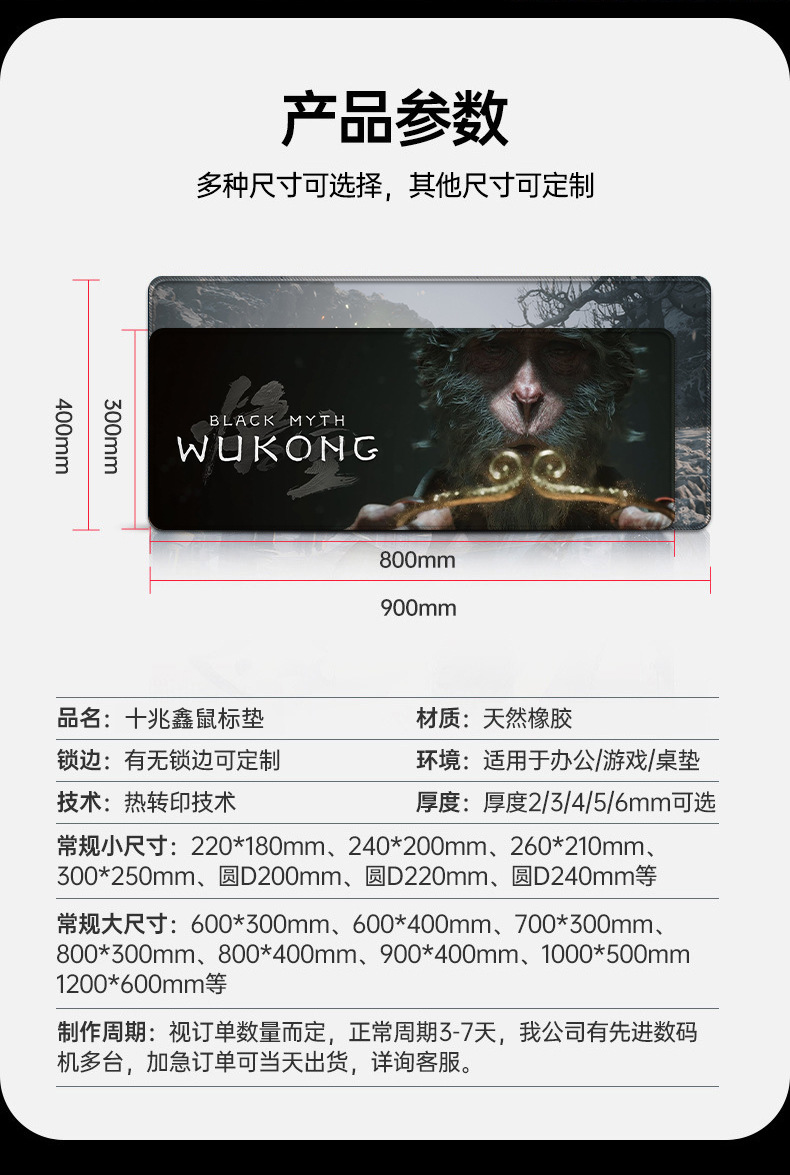 2.尺寸误差:鼠标垫是橡胶材质,有一定的弹性,在裁断时会产生尺寸误差,误差在1-2厘米,介意勿拍