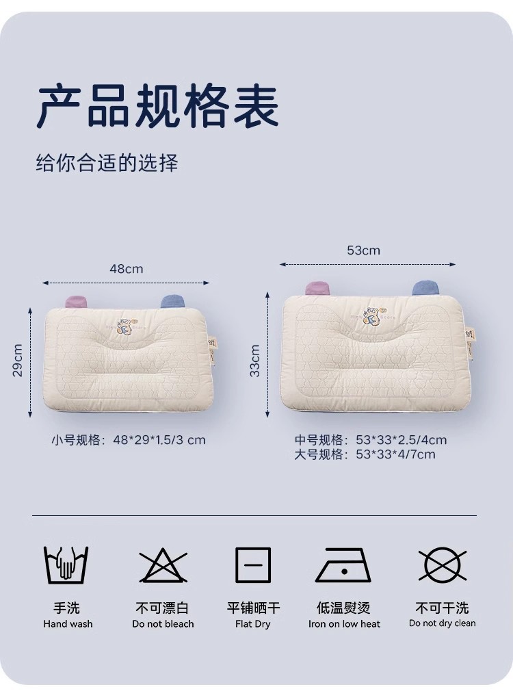 순면 A급 어린이 베개 유아용 베개 코어 유치원 수면 초등학생 목 보호 수면 베개 무너지지 않음 1세 36