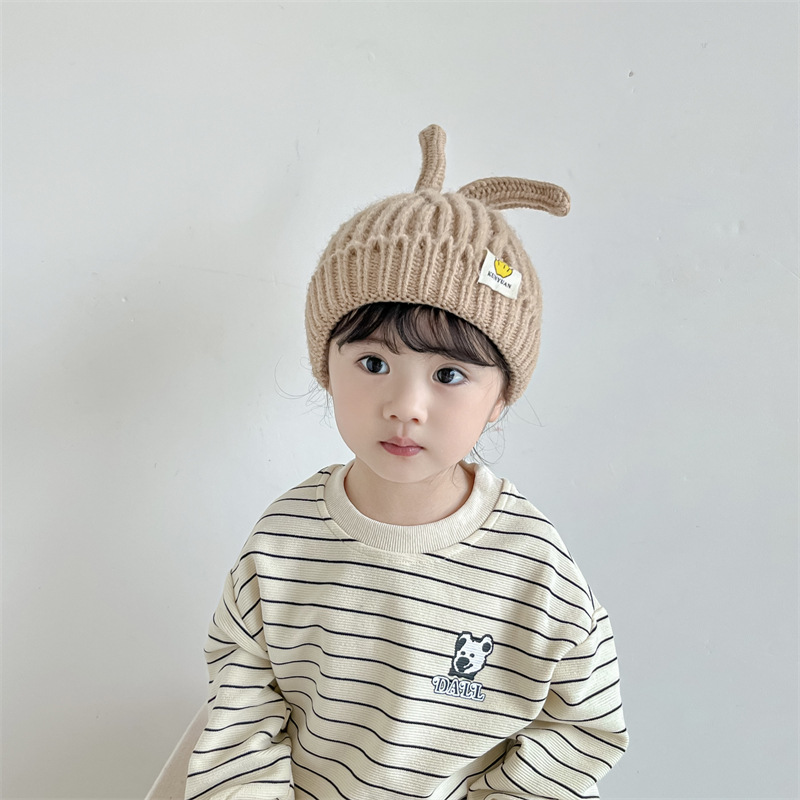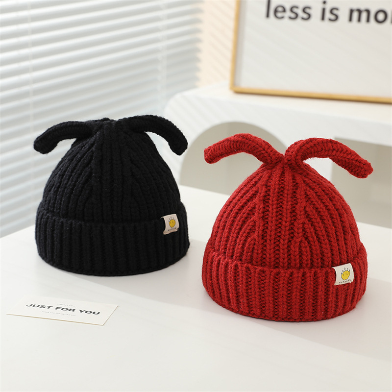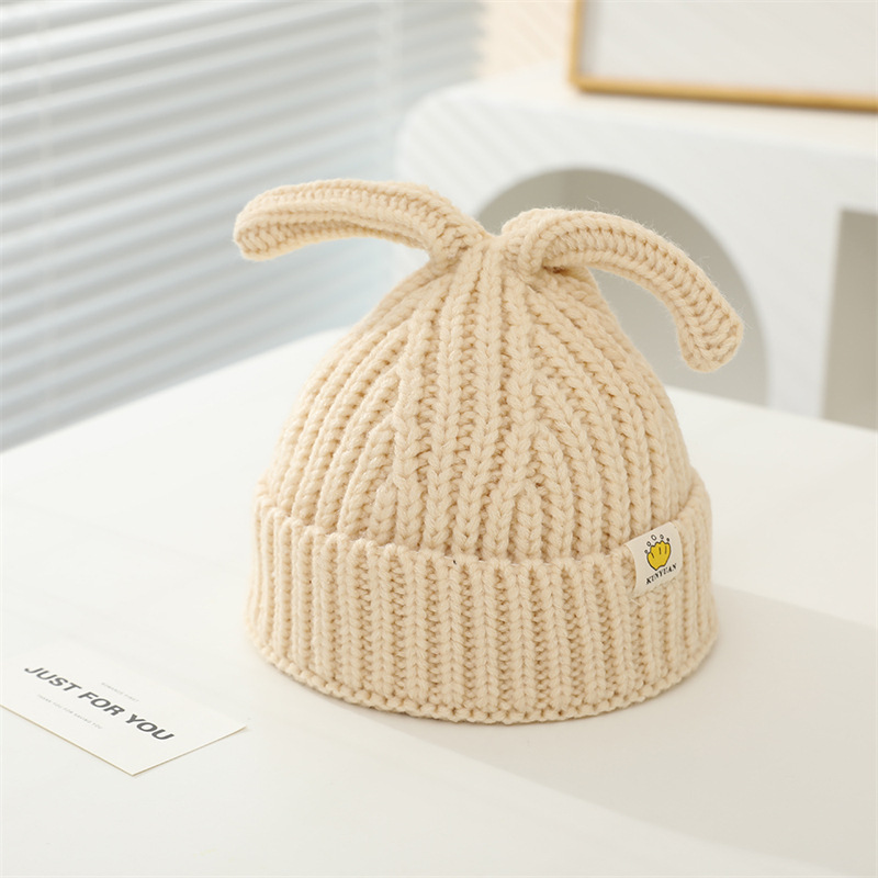 아기 모자 가을과 겨울 새로운 한국 스타일 귀여운 따뜻한 니트 모자 슈퍼 귀여운 긴 귀 간단한 어린이 양모 모자스토어 가기