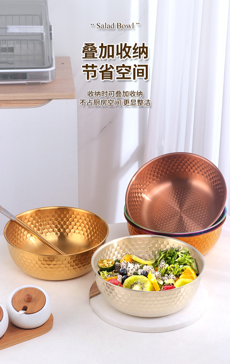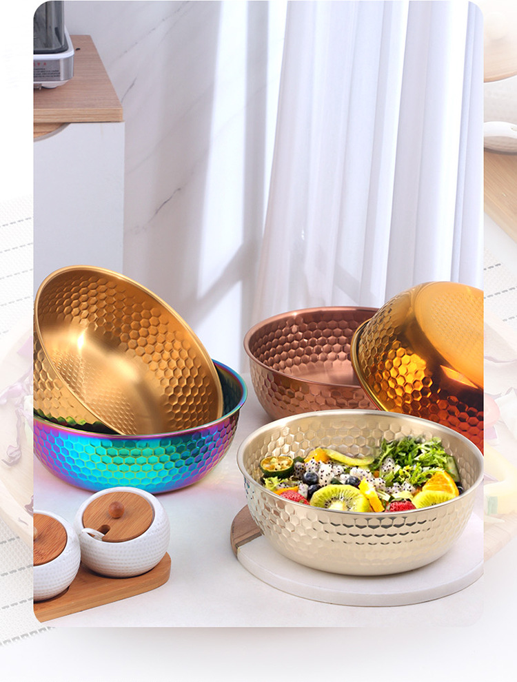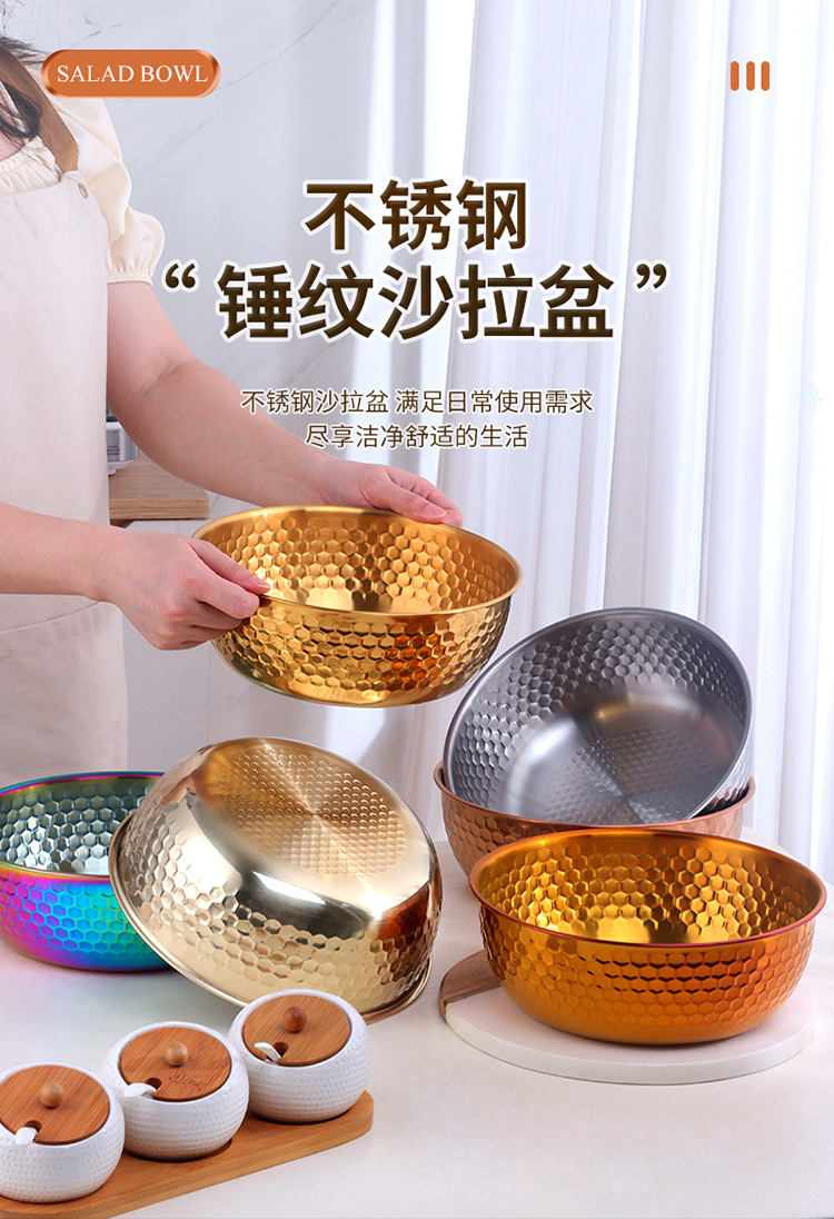 두꺼운 스테인레스 스틸 샐러드 분지 해머 패턴 미끄럼 방지 계란 분지 가정용 주방 베이킹 및 분지 요리 분지 [상품