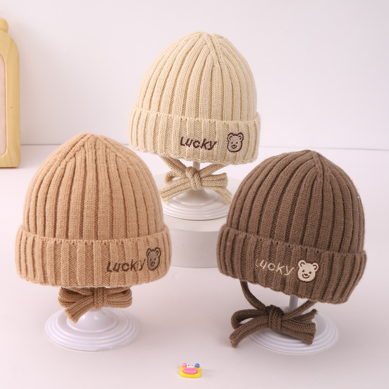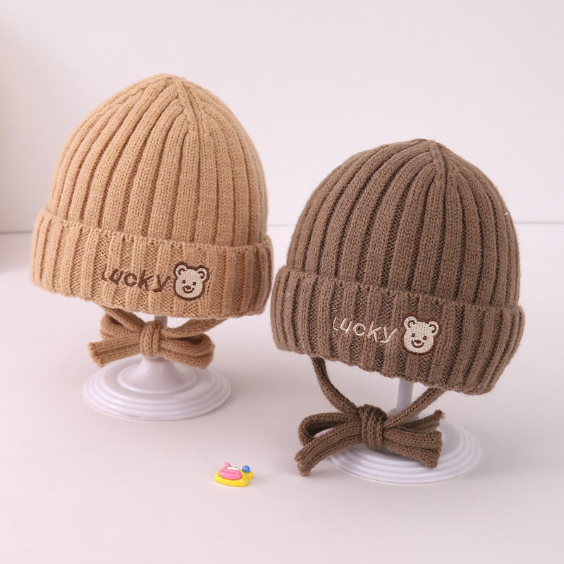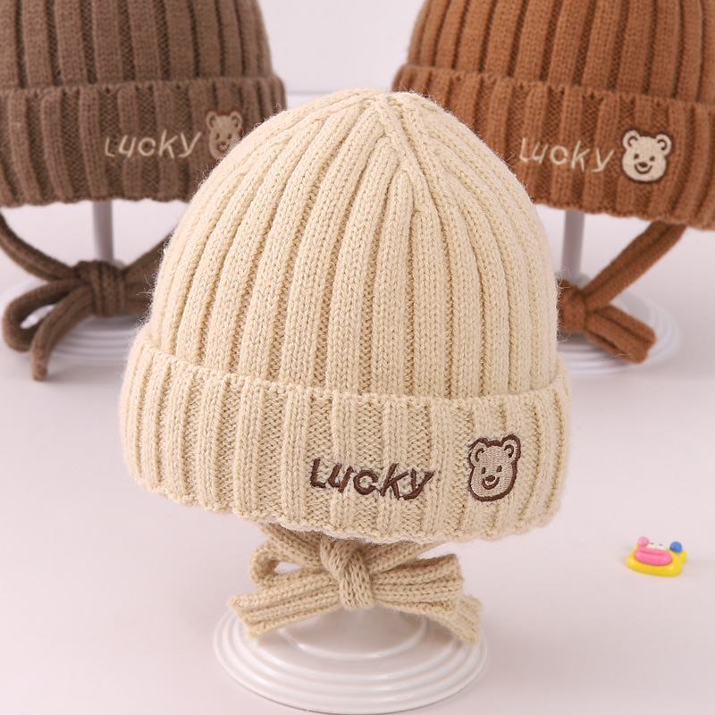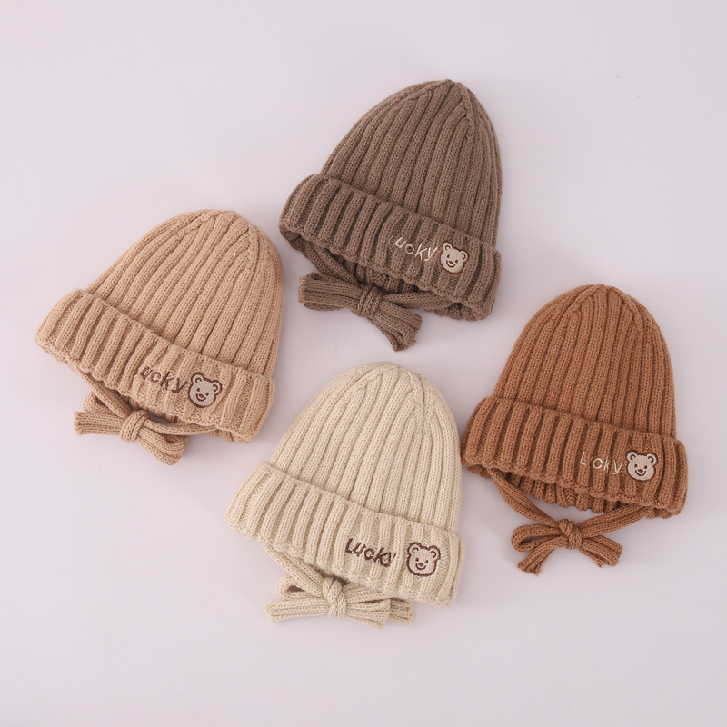 겨울 어린이 양모 모자 소녀 따뜻한 방풍 소년 귀 보호 모자 아기의 귀여운 니트 모자 맞춤형 테더