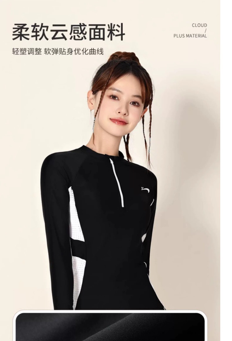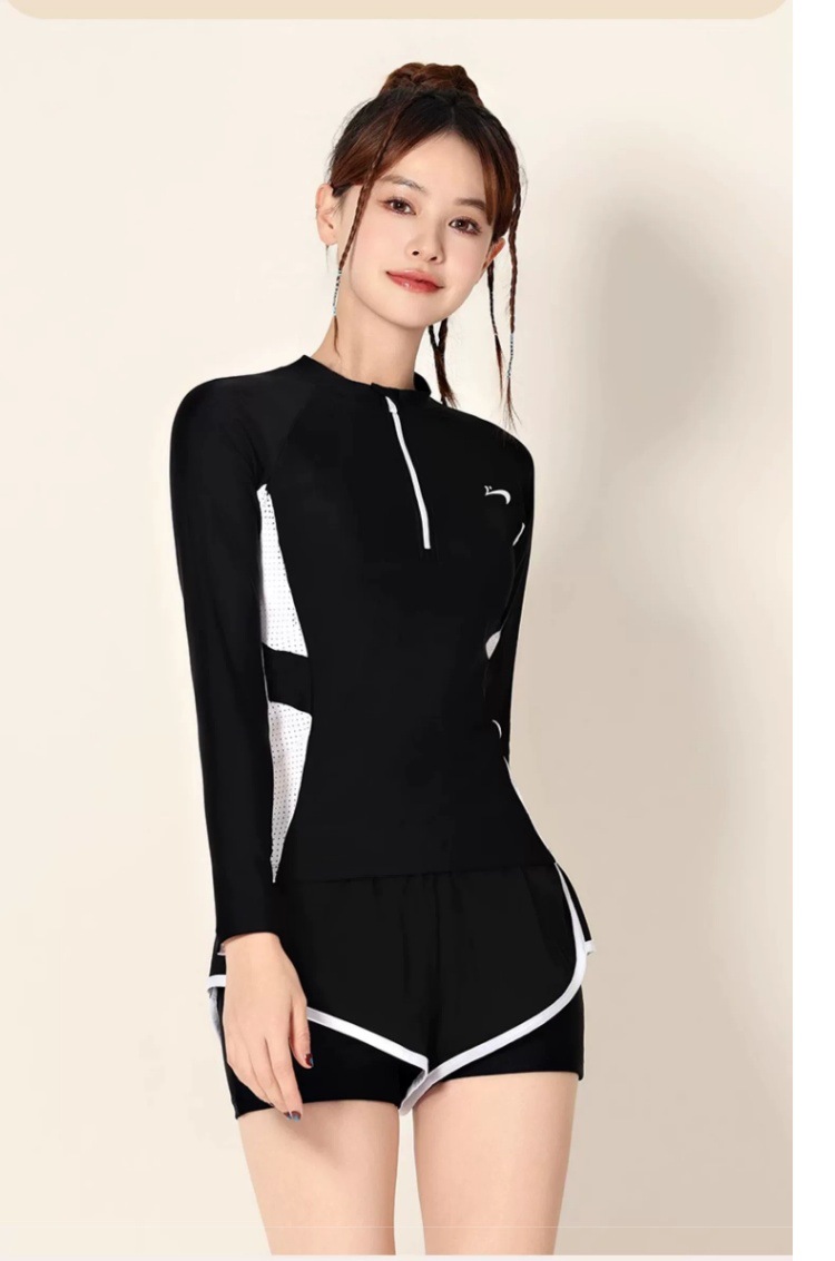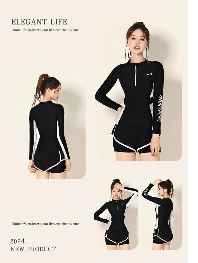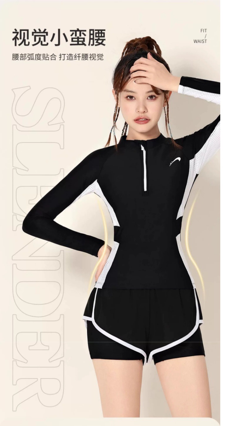 고귀한 새 수영복 여성 긴팔 2024 새로운 스타일 보수적 분할 육체 덮음 태양 보호 슬리밍 스포츠 플랫 앵글 학생스토어 가기