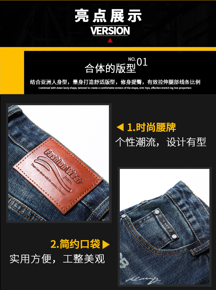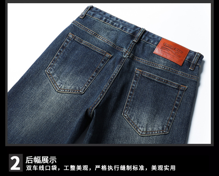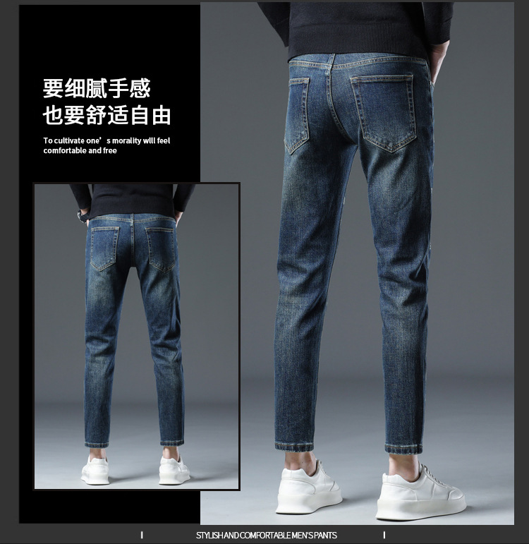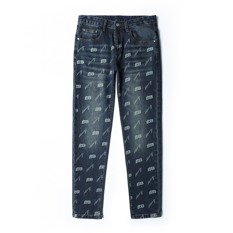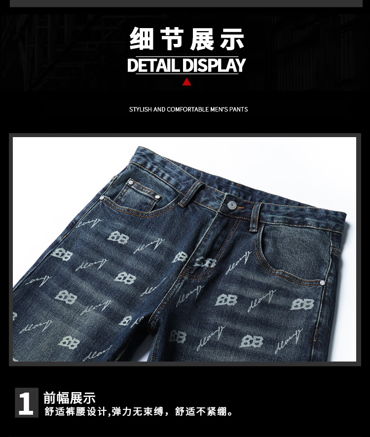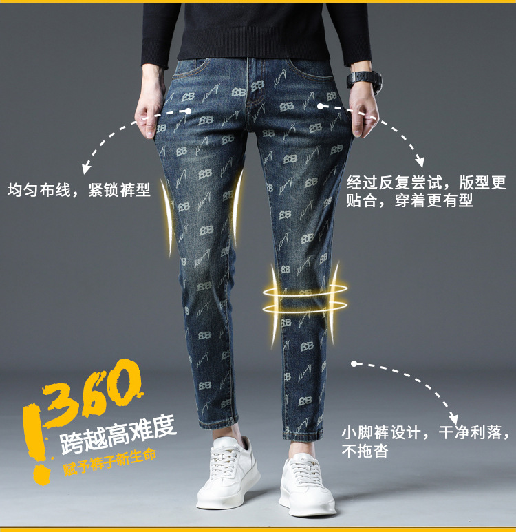 가을과 겨울 새로운 패셔너블 다크 프린트 청바지 남성용 트렌디 브랜드 신선한 스타일 청소년 스트레치 작은 스트레이트 긴 바지