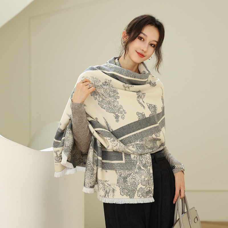 양모 자카드 스카프와 함께 새로운 가을과 겨울 풍경 그림 여성 국가 스타일 하이 엔드 기질 외부 긴 목도리 스카프