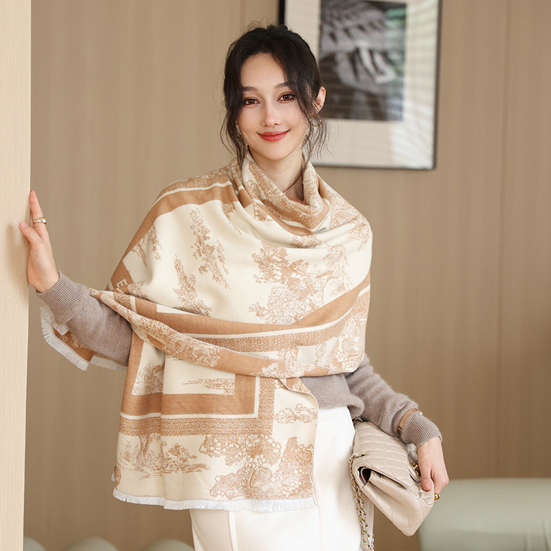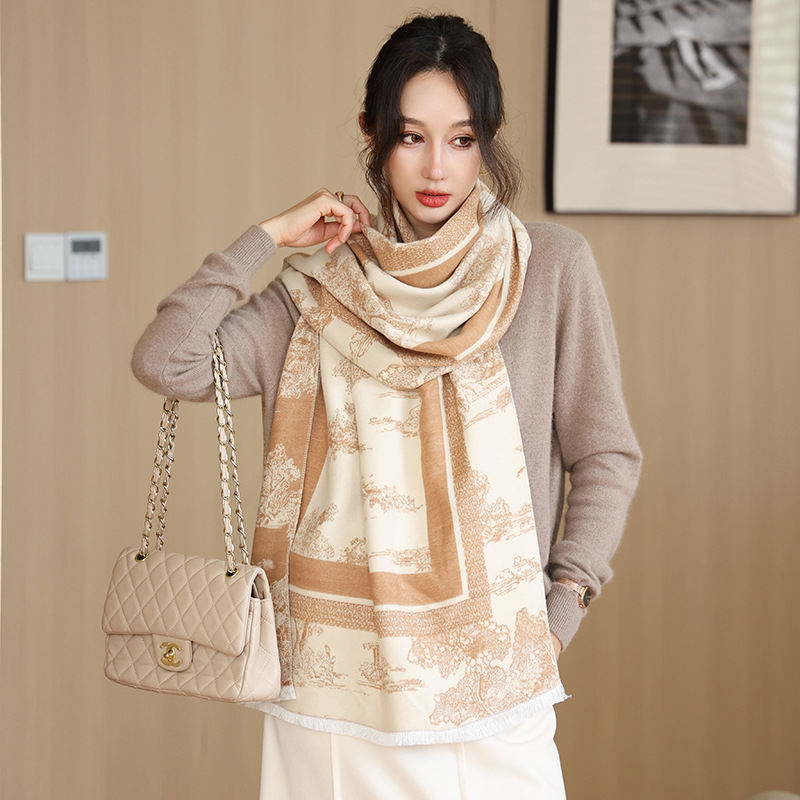 양모 자카드 스카프와 함께 새로운 가을과 겨울 풍경 그림 여성 국가 스타일 하이 엔드 기질 외부 긴 목도리 스카프스토어 가기