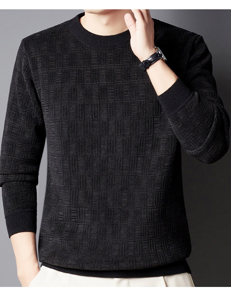 겨울 남자 기모 두꺼운 따뜻한 스웨터 중년 자카드 체스 판 긴 소매 단색 간단한 마작베이스 셔츠