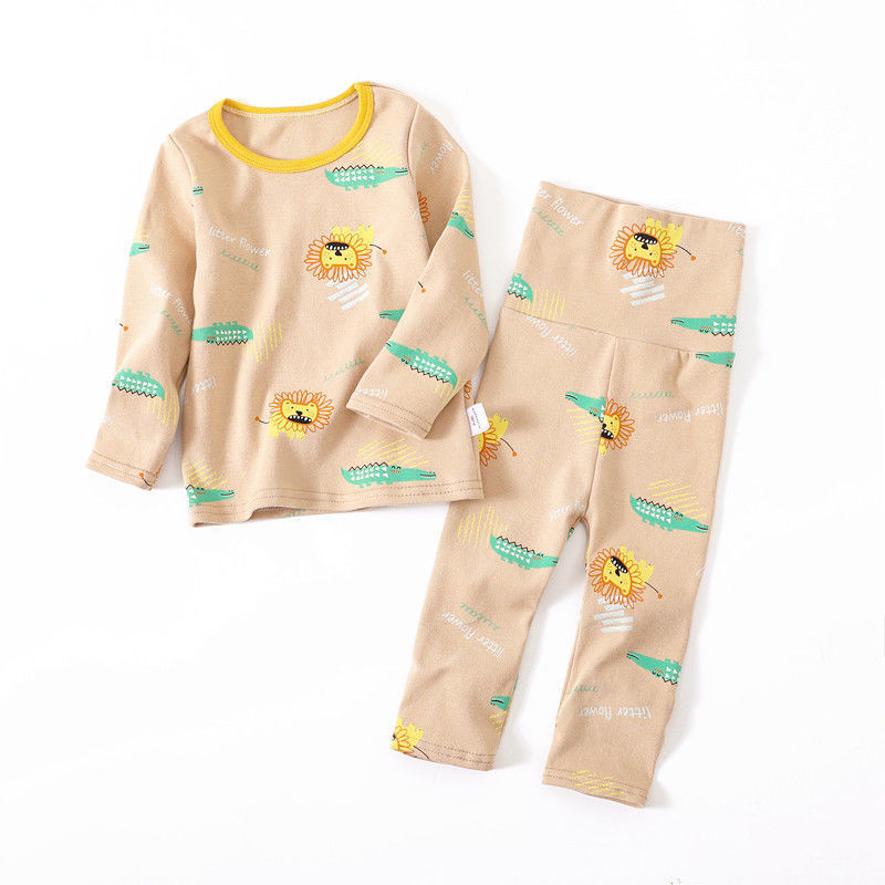 독일 벨벳 아기 잠옷 가을과 겨울 아기 소년과 소녀 가을 옷 긴 바지 세트 분할 높은 허리 배 따뜻한 내복