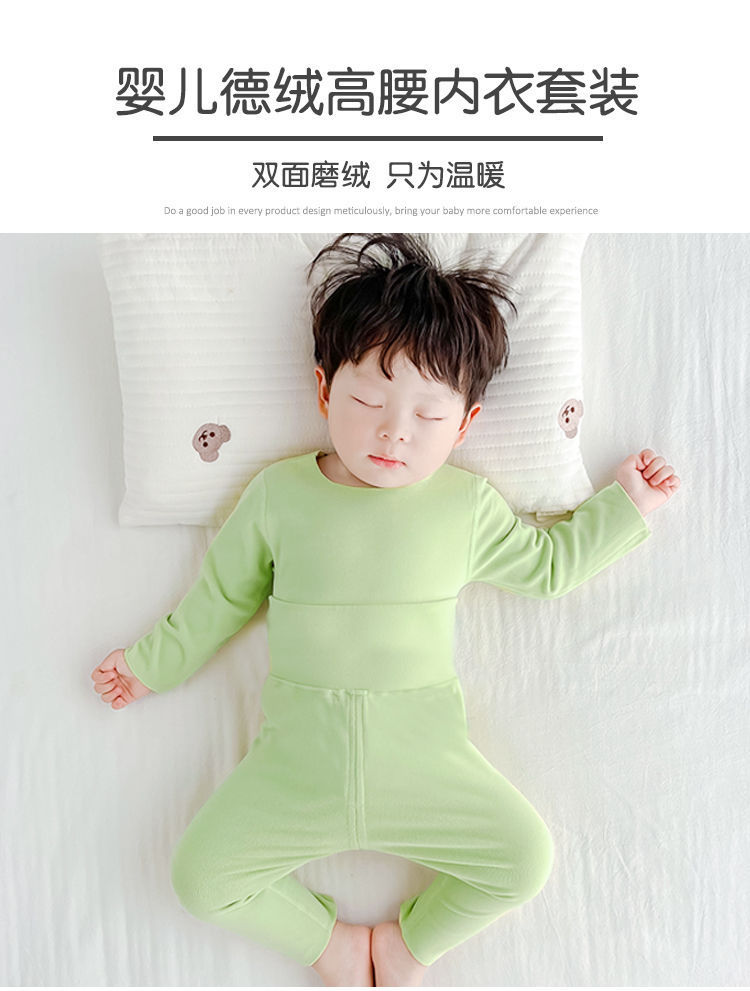 독일 벨벳 아기 잠옷 가을과 겨울 아기 소년과 소녀 가을 옷 긴 바지 세트 분할 높은 허리 배 따뜻한 내복스토어 가기
