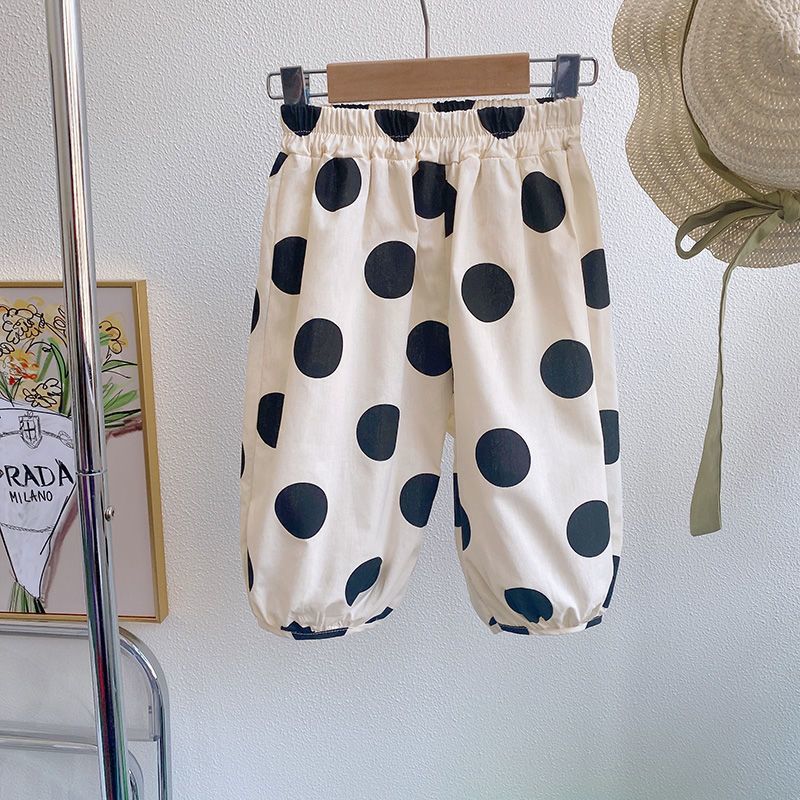 한국식 폴카 도트 모기 방지 바지 2025 여름 느슨한 다리 발가락 캐주얼 폴카 도트 서양식 베이비 블루머 소년 소녀스토어 가기