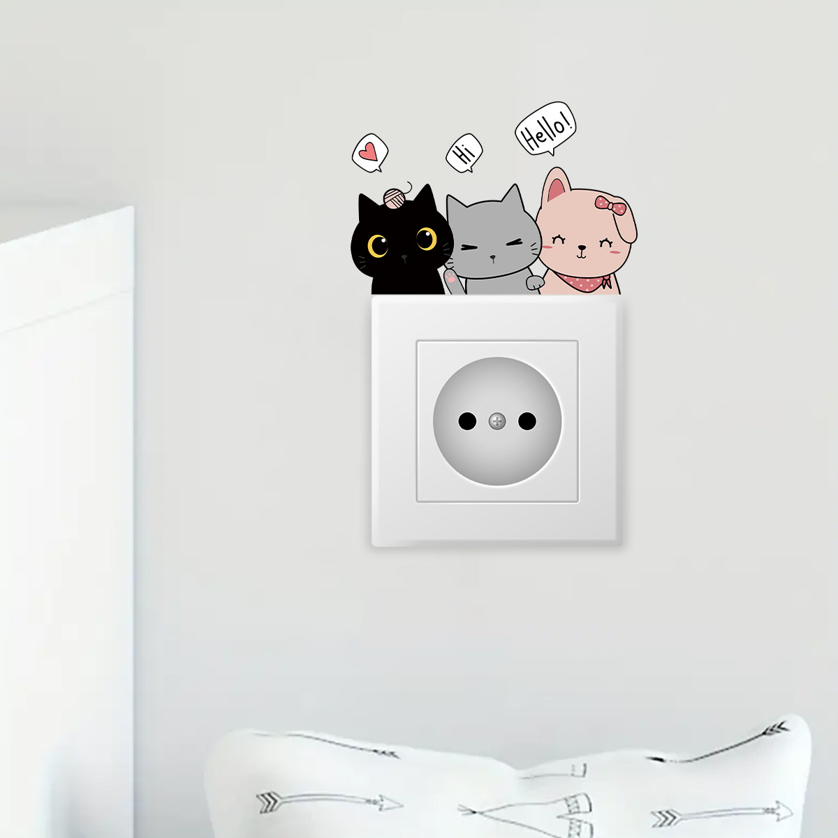 만화 귀여운 새끼 고양이 스위치 스티커 자체 접착 벽 스티커 룸 소켓 스위치 미화 장식 스티커 ZN0894C스토어 가기