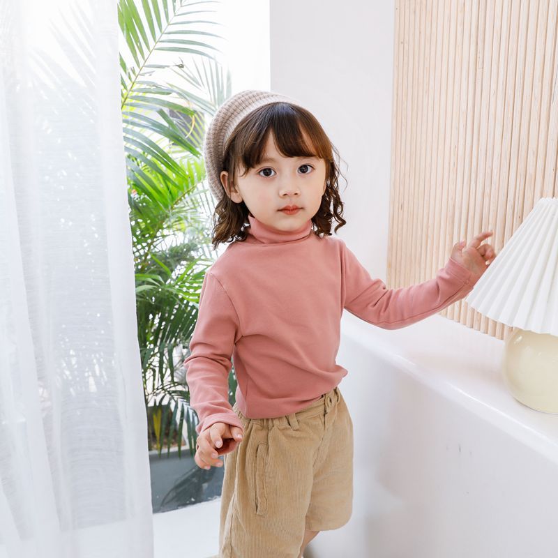 어린이 가을과 겨울 높은 칼라베이스 셔츠 소년 소녀 드 롱 기모 긴 소매 티셔츠 아기의 내복 중 큰 어린이 가을스토어 가기