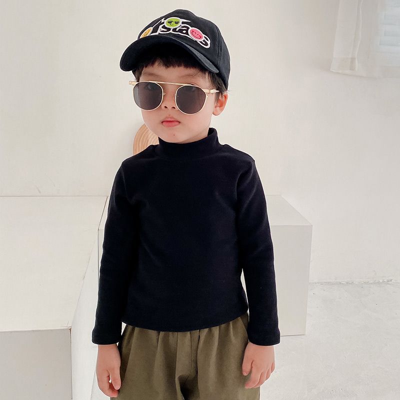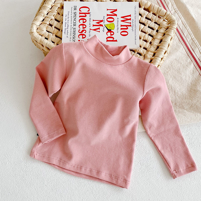 어린이 가을과 겨울 높은 칼라베이스 셔츠 소년 소녀 드 롱 기모 긴 소매 티셔츠 아기의 내복 중 큰 어린이 가을