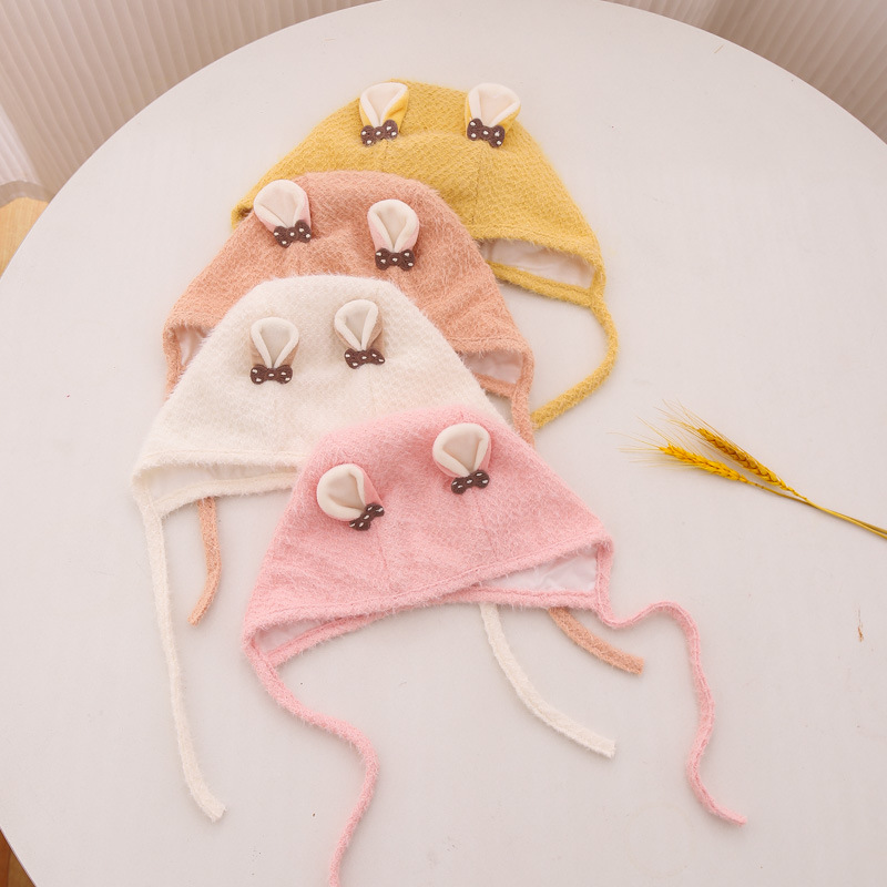가을 아기 귀 보호 모자 한국 귀여운 토끼 플러시 두껍게 한 아기 태아 모자 fontanelle 바람 방지 캡 겨울