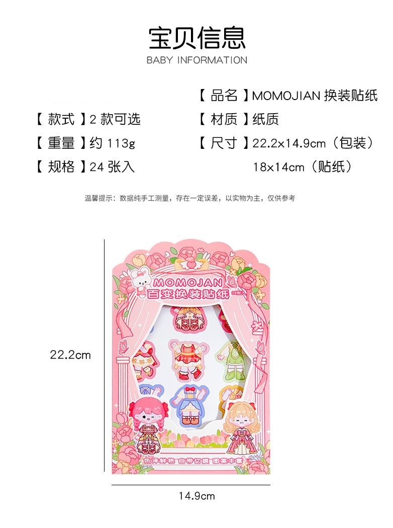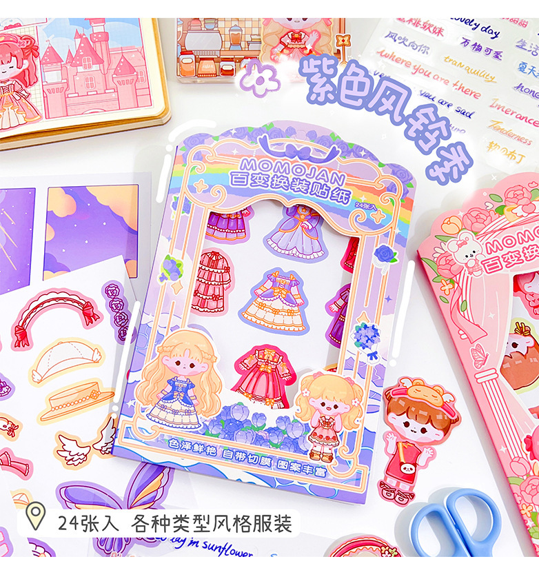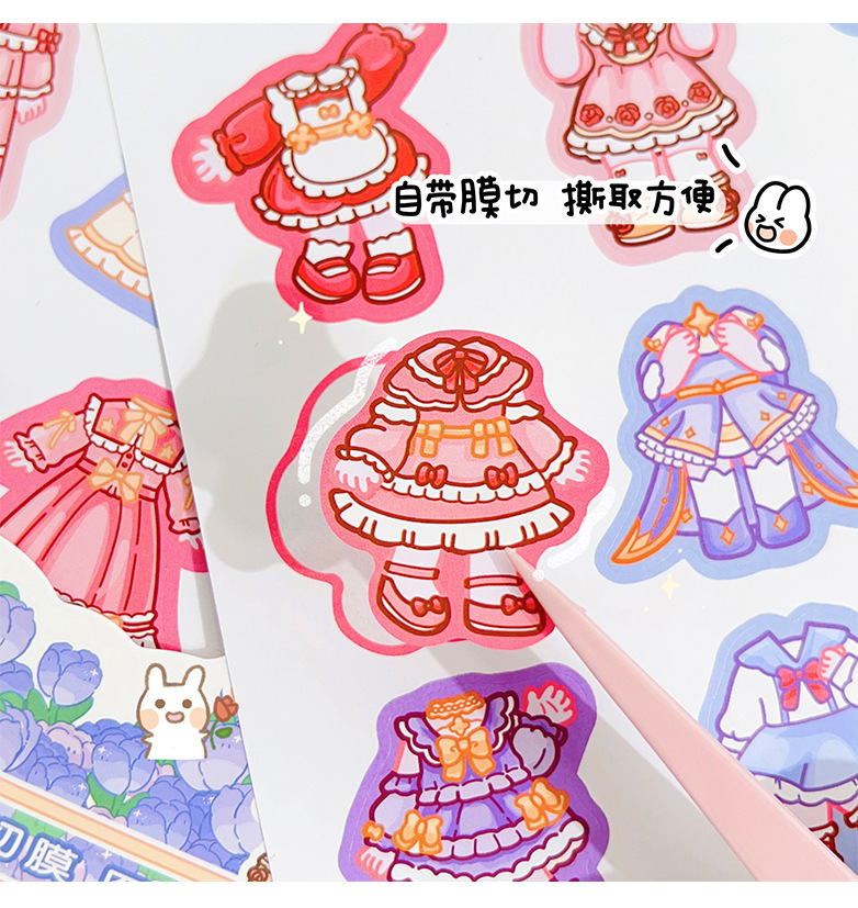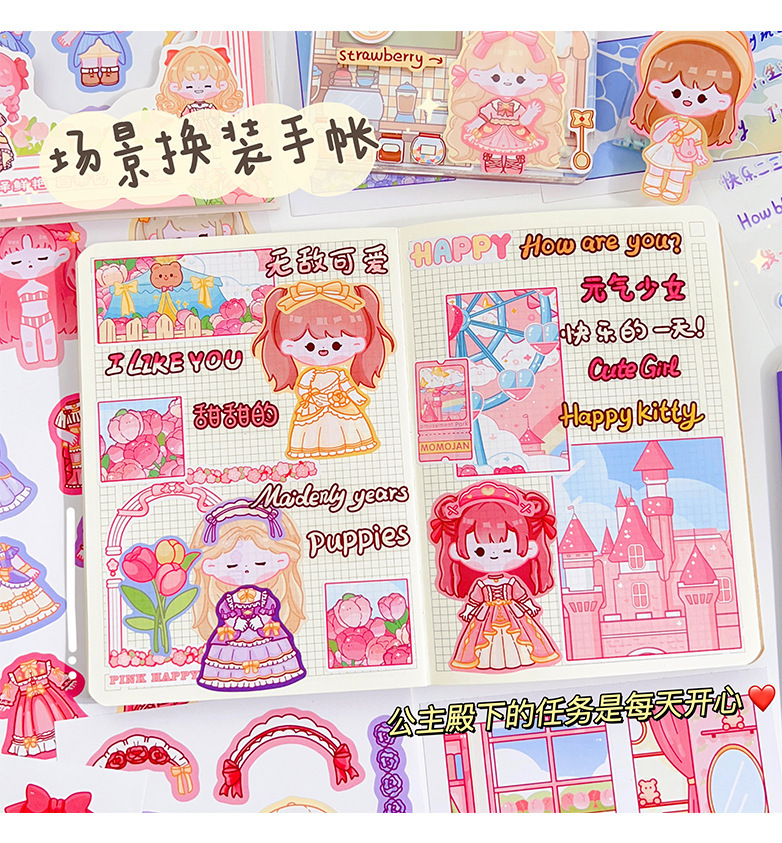 MOMO 소스 원피스 업 스티커 귀여운 어린이 DIY 구아 카드 스티커 소녀 공주 원피스 업 스티커 붙여 넣기 스티커스토어 가기