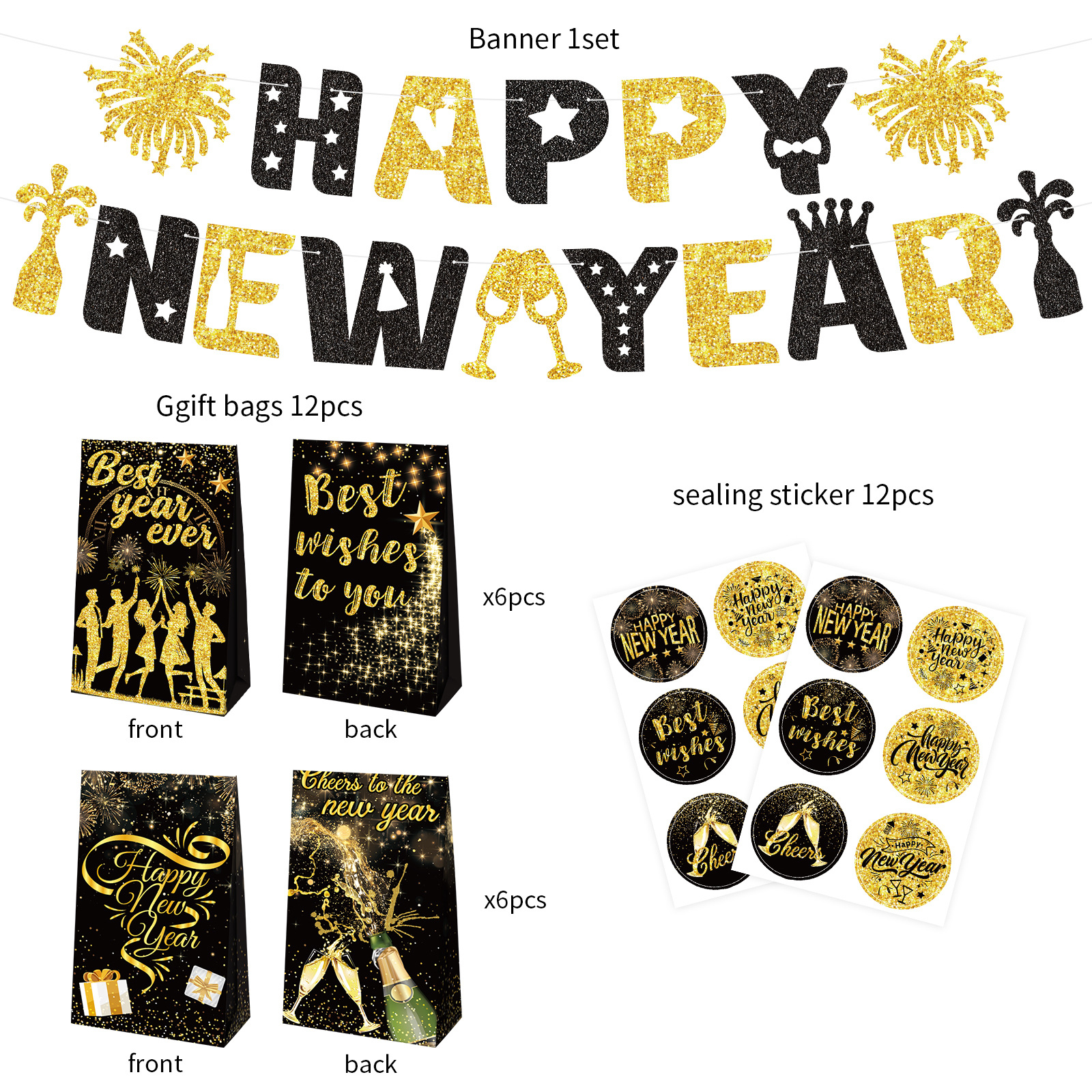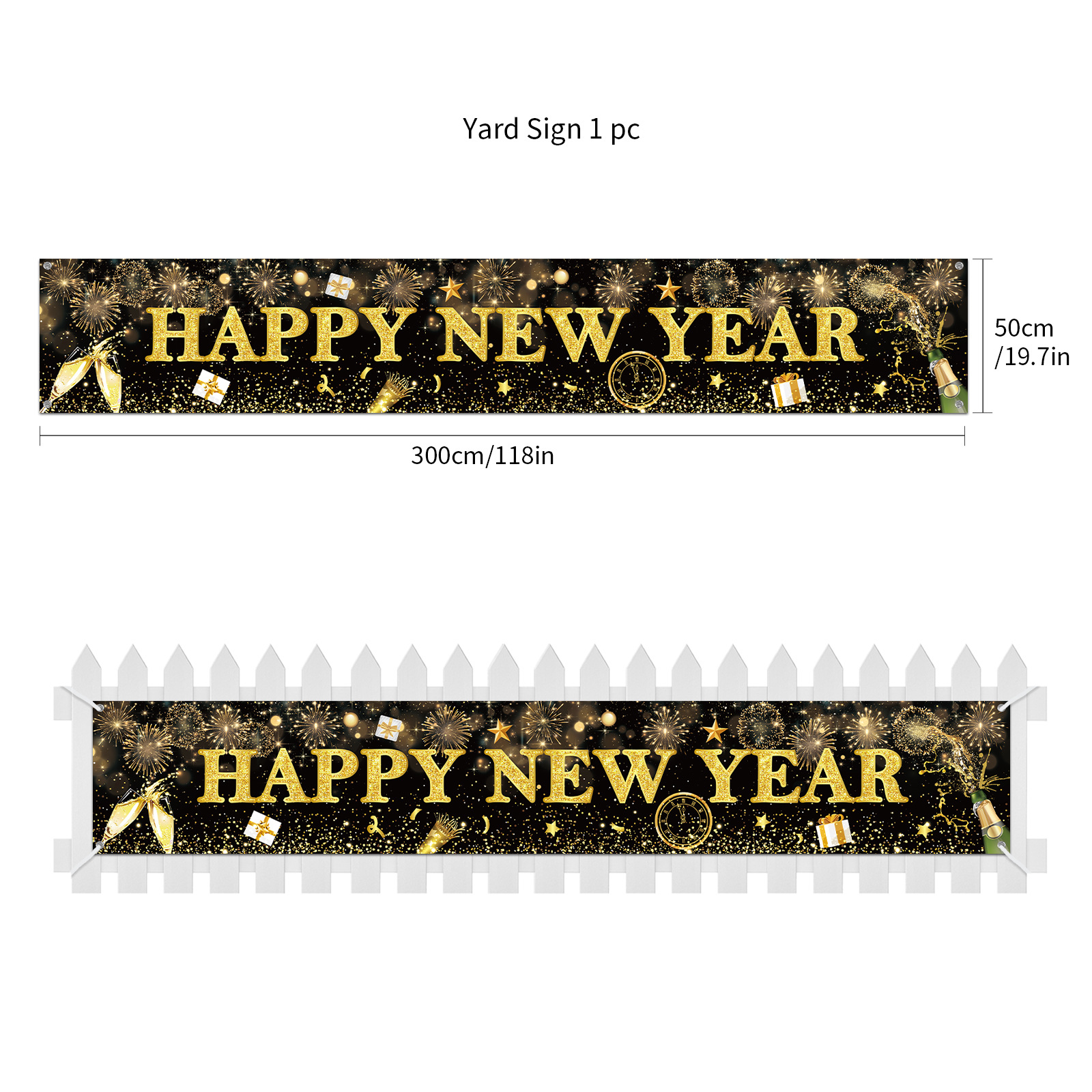 국경 2025 블랙 골드 신년 테마 파티 장식 배경 벽 배열 세트 공급 배너 깃발 풍선스토어 가기