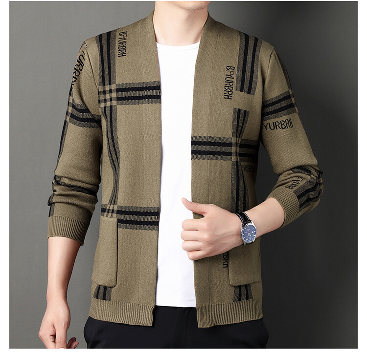 새로운 봄과 가을 남자 니트 카디건 남자 슬림 핏 스웨터 젊은 중년 남자 캐주얼 자켓 하이 엔드 올매치스토어 가기