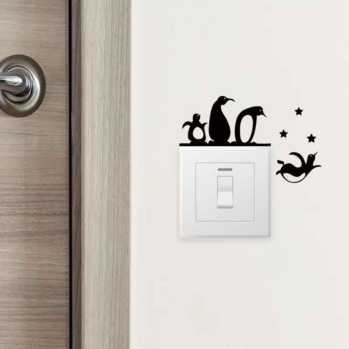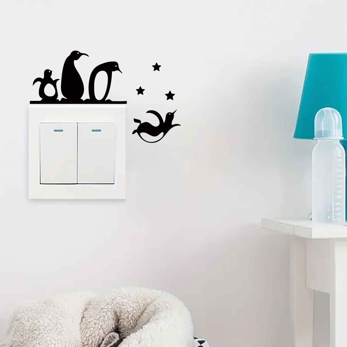 만화 귀여운 펭귄 실루엣 스위치 스티커 자체 접착 벽 스티커 간단한 방 스위치 장식 스티커 ZN0898C