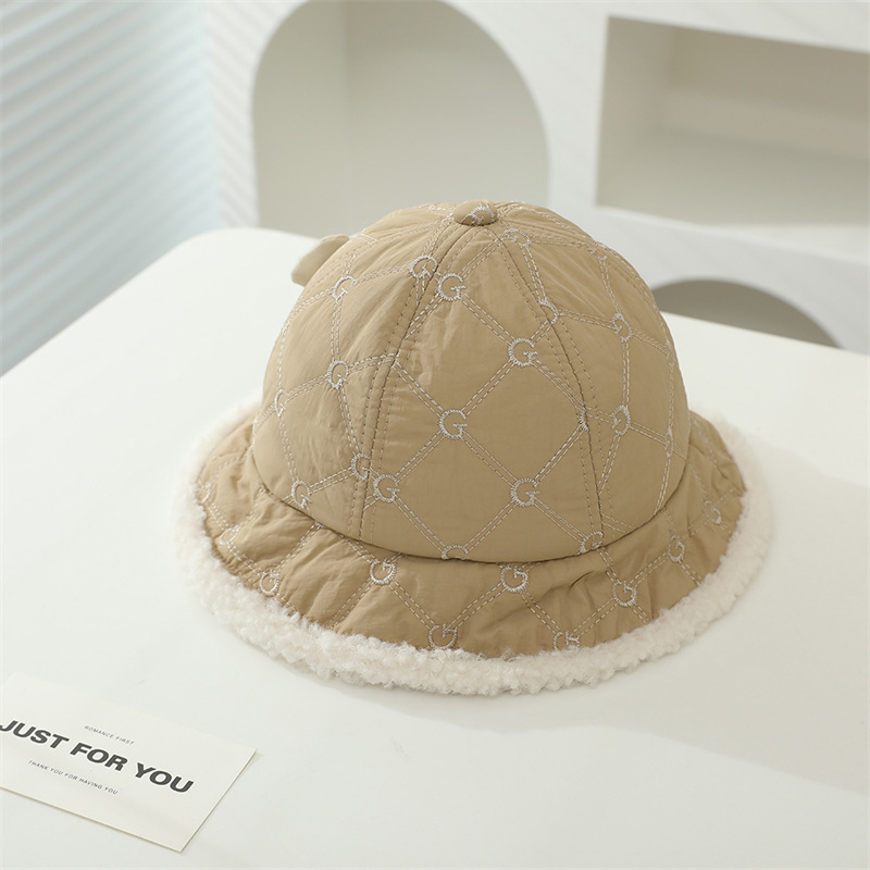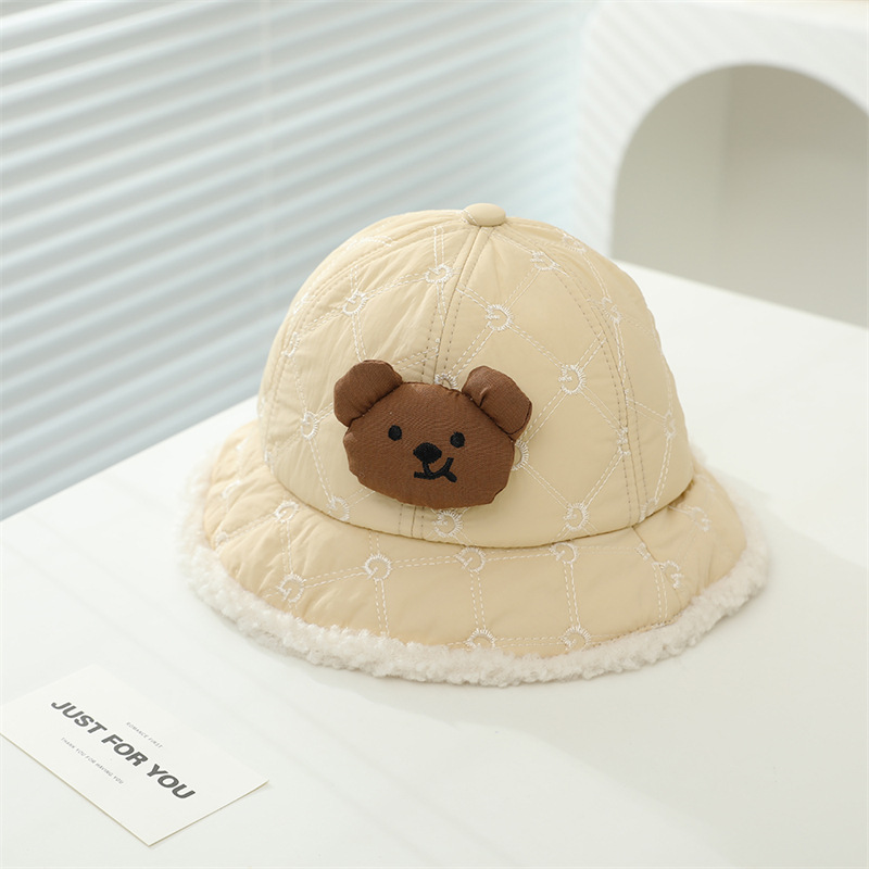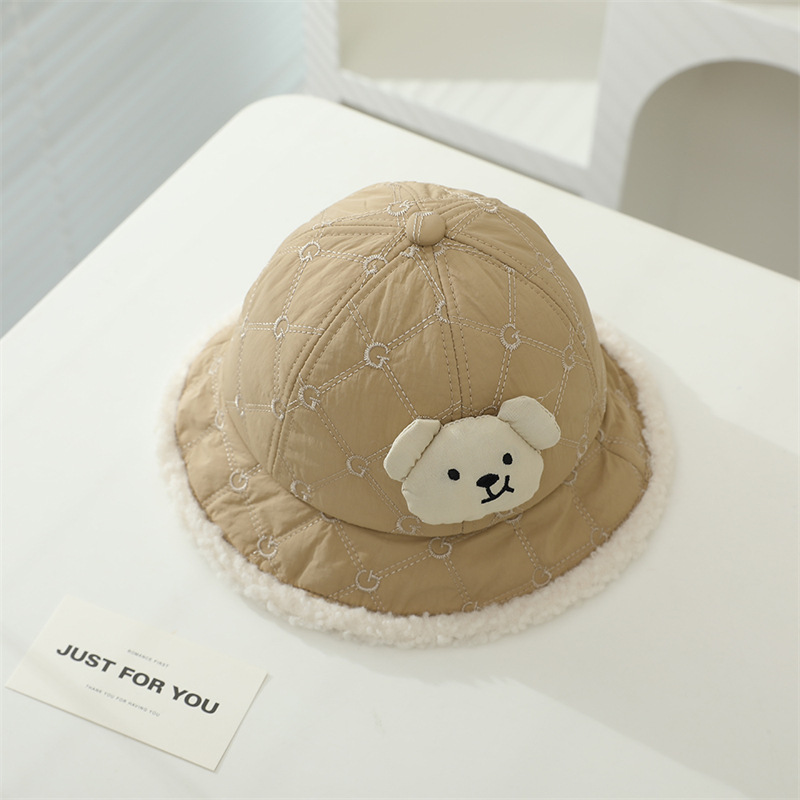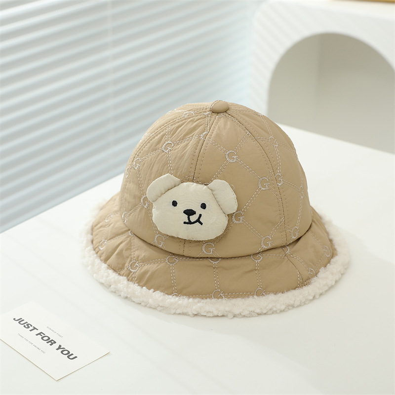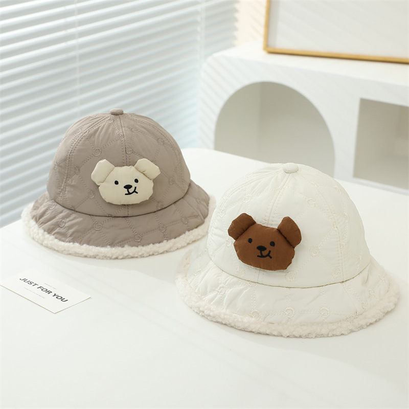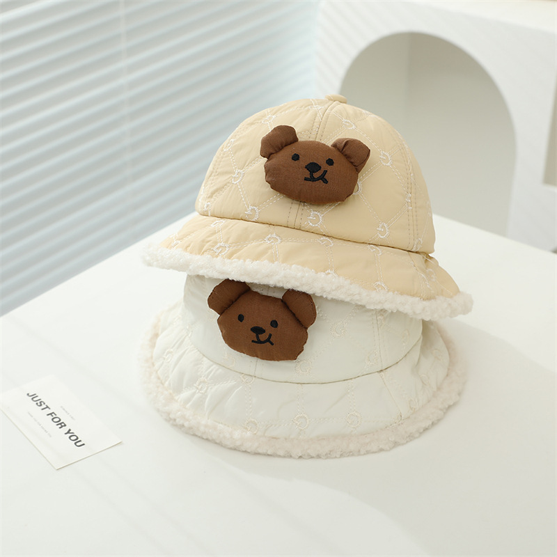어린이 가을 겨울 올 매치 기모 분지 모자 따뜻한 봉제 어부 모자 아기 귀여운 만화 곰 기모 모자