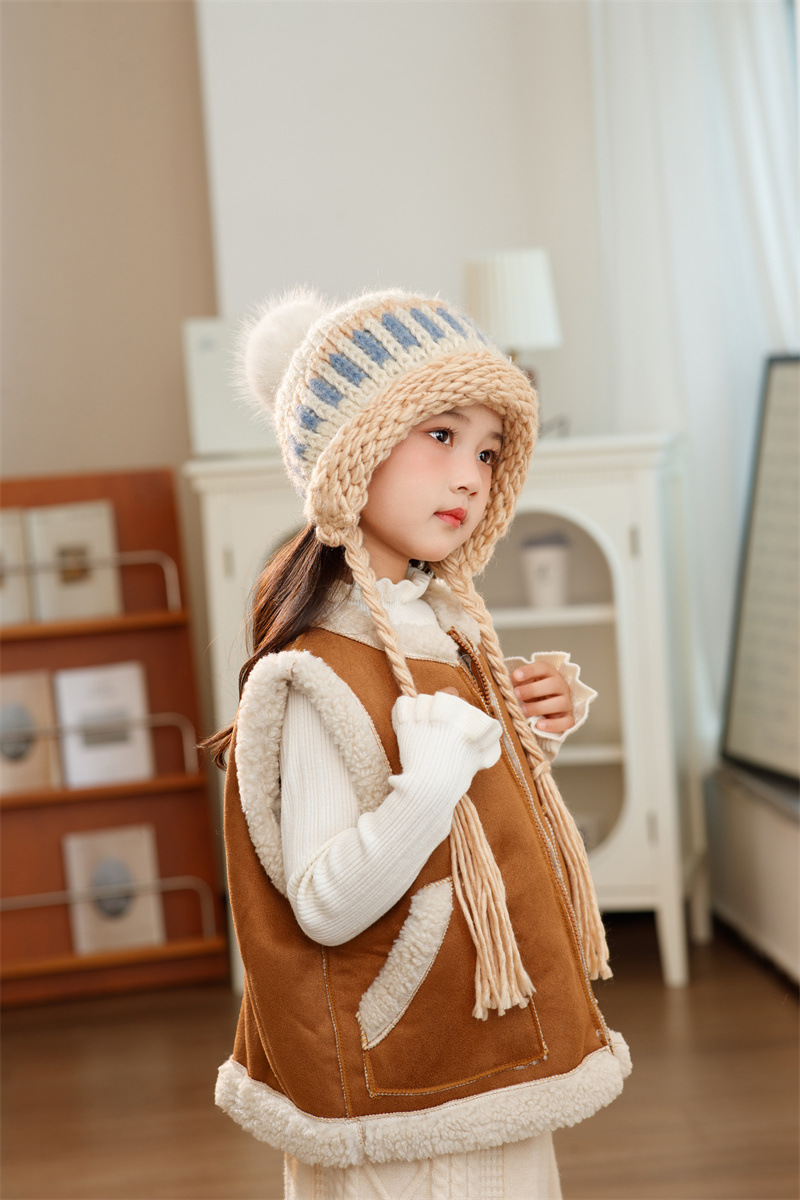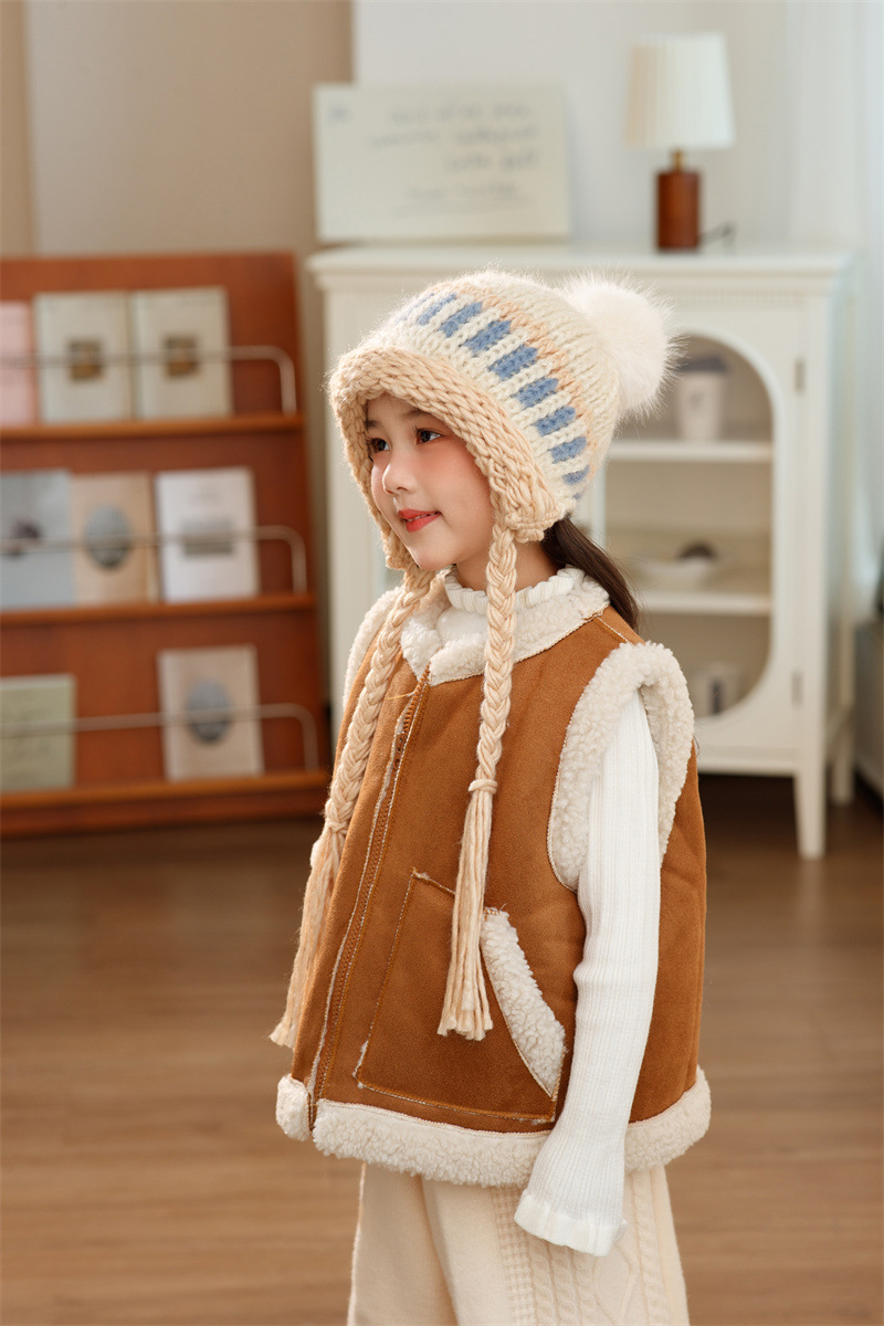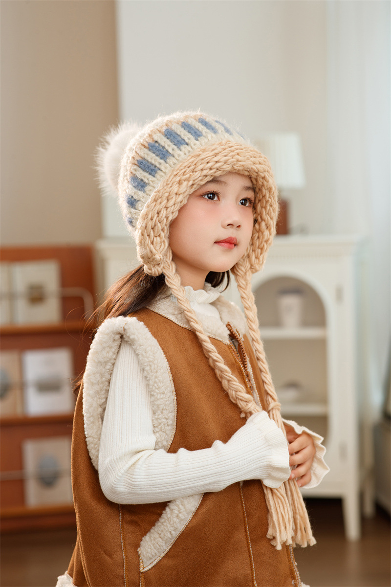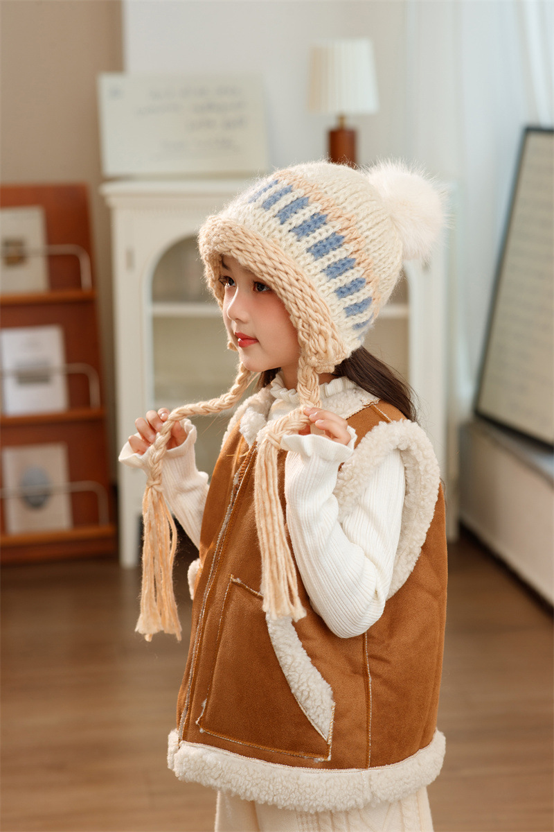 클립 컬러 풀오버 니트 따뜻한 모자 어린이 가을과 겨울 스포츠 브레이드 모자 야외 소년 소녀 어린이 울 모자