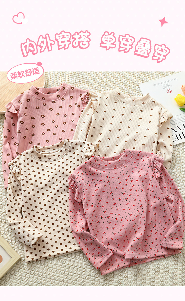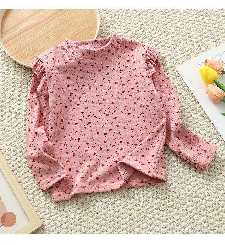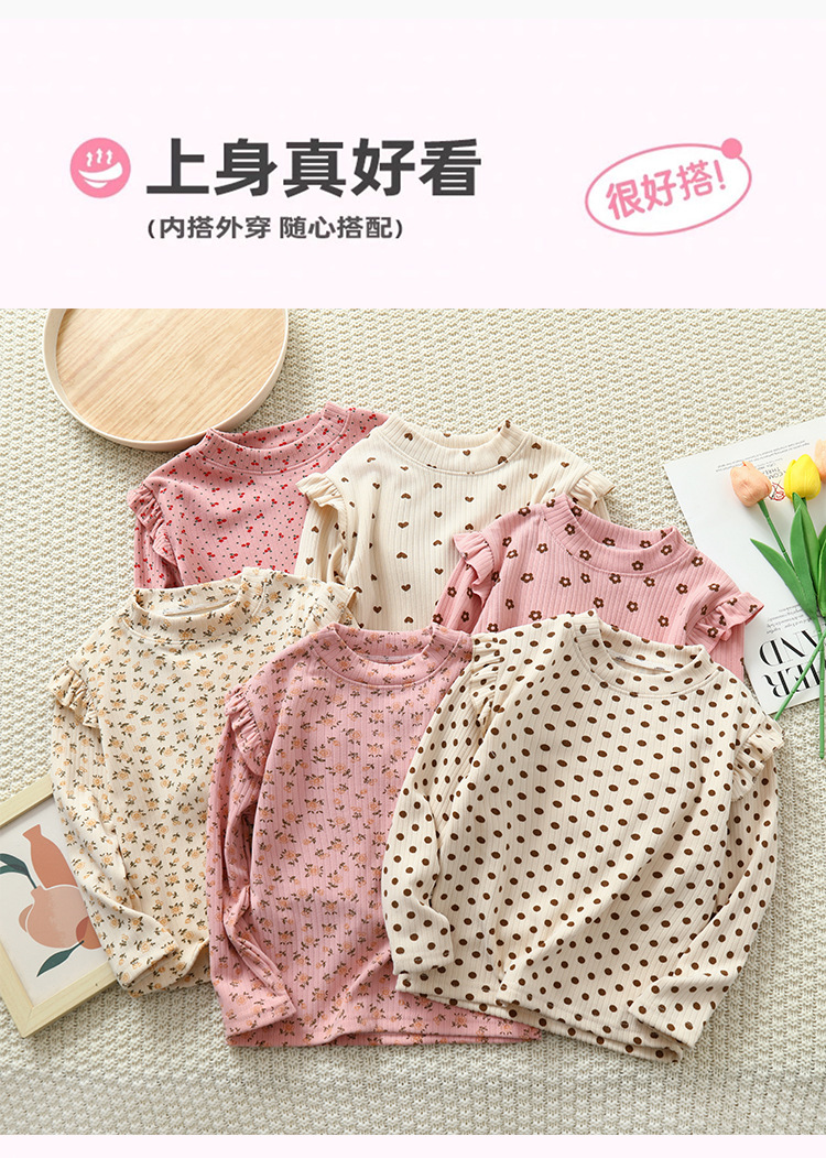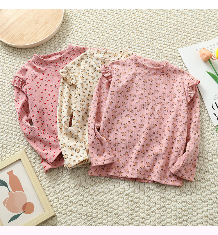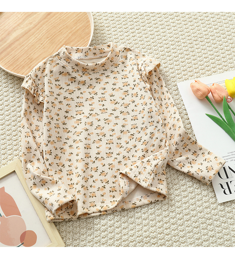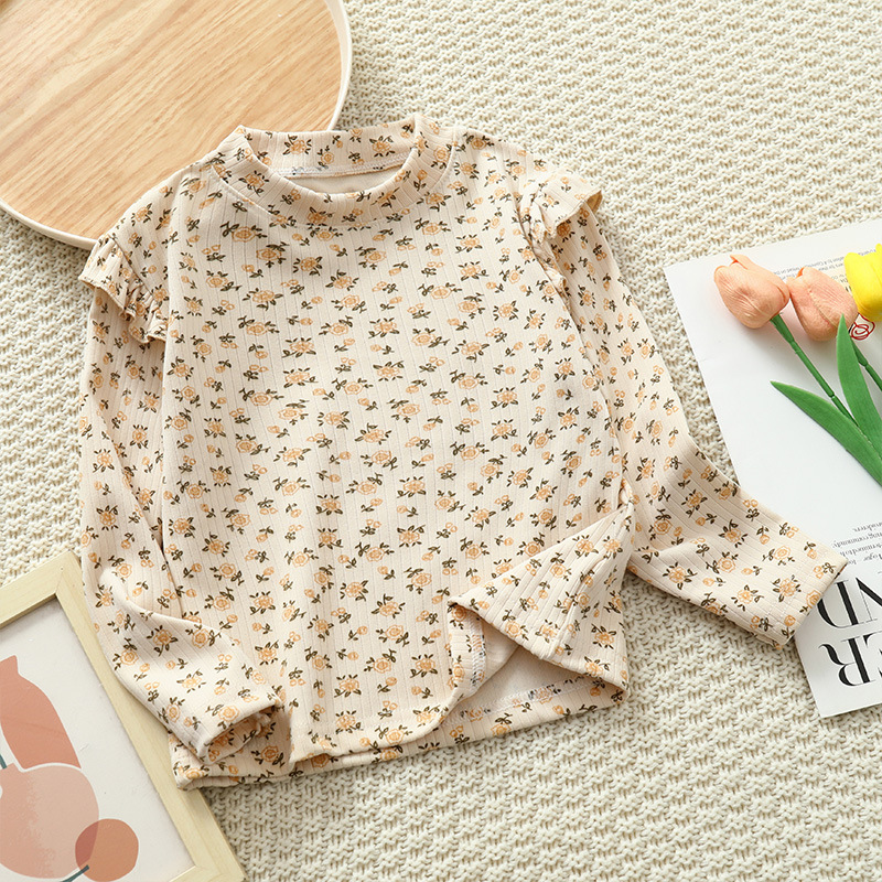 소녀 가을과 겨울 새로운 꽃 플라잉 슬리브 베이스 셔츠 크루 넥 긴 소매 티셔츠 작은 소녀 아기 올 매치 탑 아동복