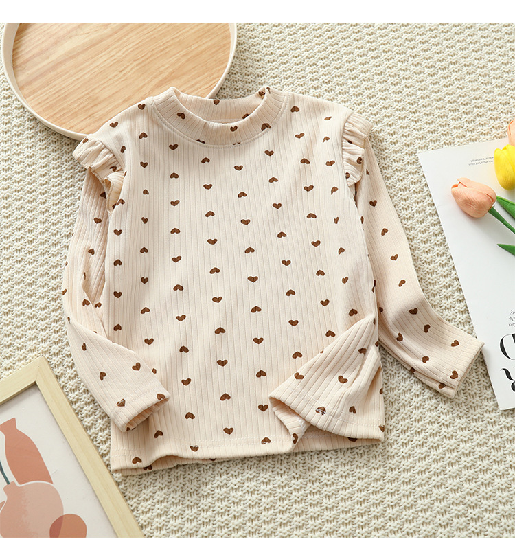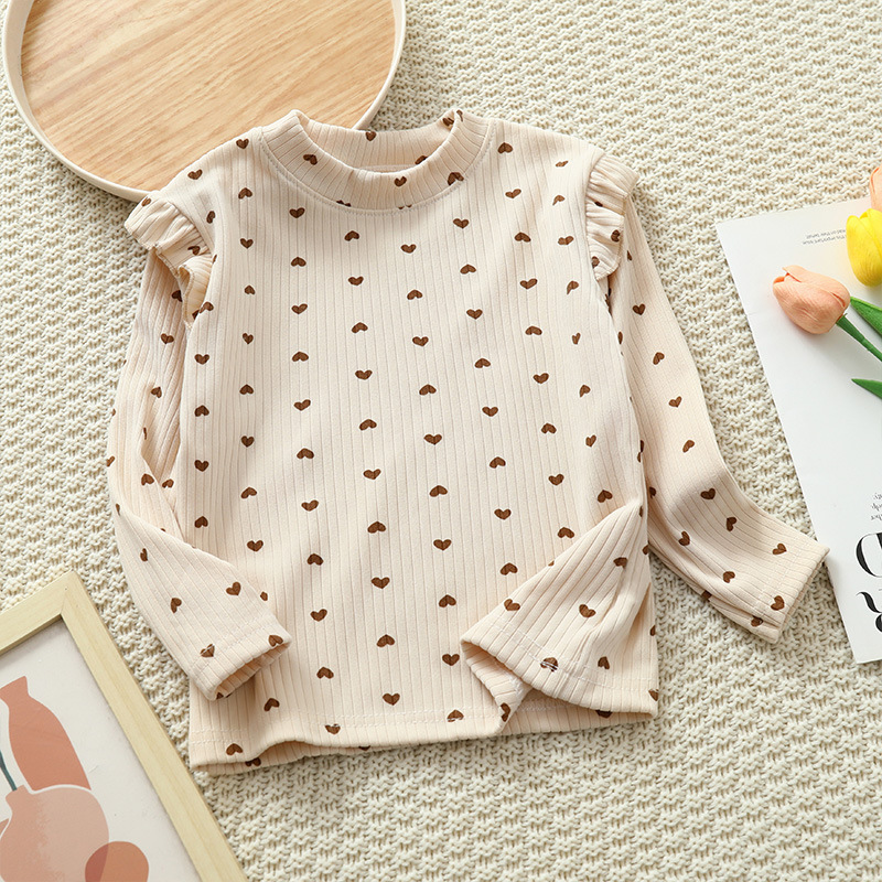 소녀 가을과 겨울 새로운 꽃 플라잉 슬리브 베이스 셔츠 크루 넥 긴 소매 티셔츠 작은 소녀 아기 올 매치 탑 아동복스토어 가기