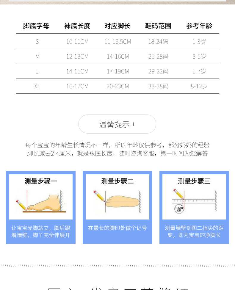 • 3-5세(권장 발 길이 16-18CM, 신발 사이즈 21-26)