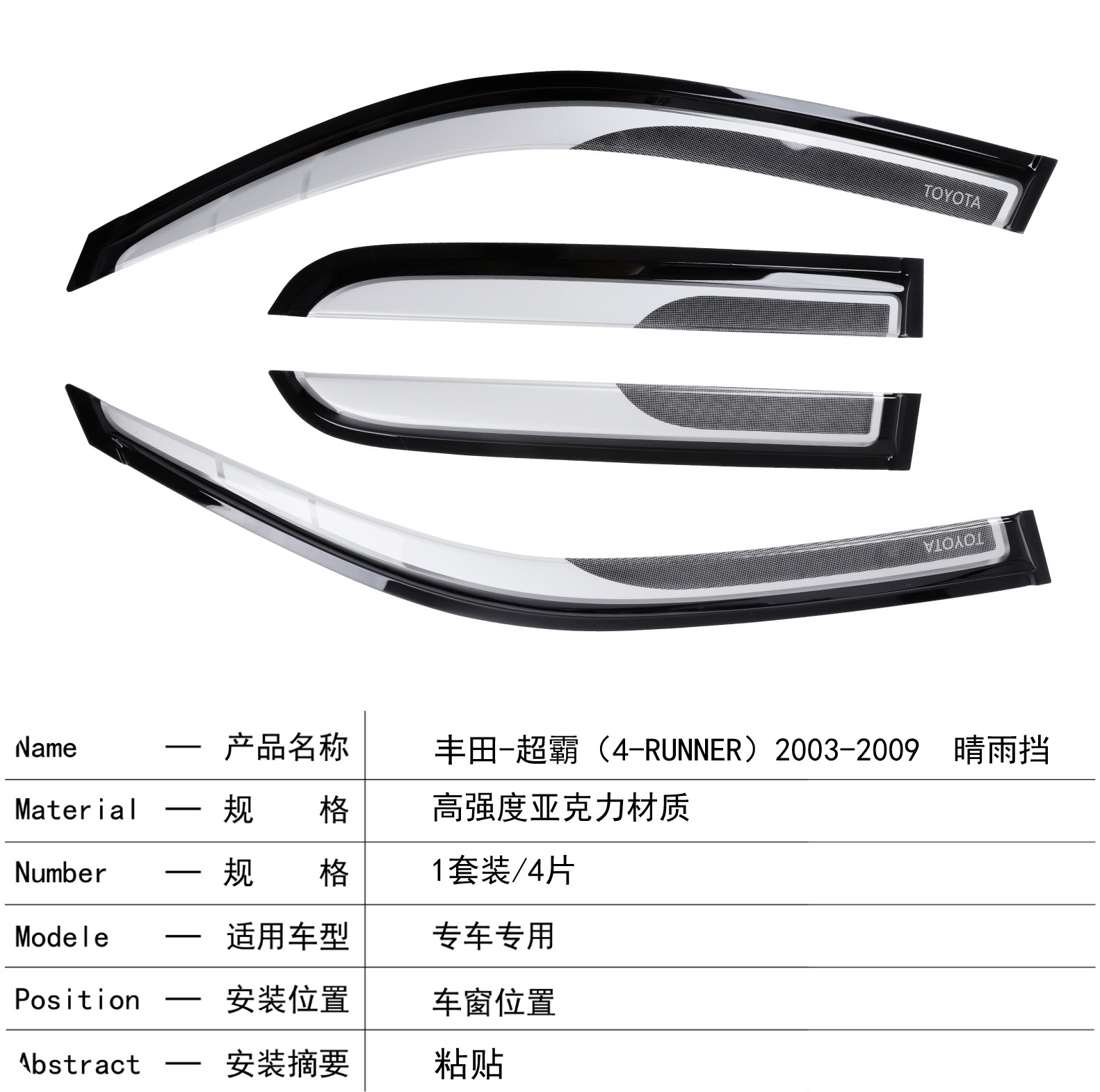 국경 간 응용 프로그램 2003-09 Toyota Speedmaster 4RUNNER 창 비 방패 2 색 실크 스크린 자동차 방패