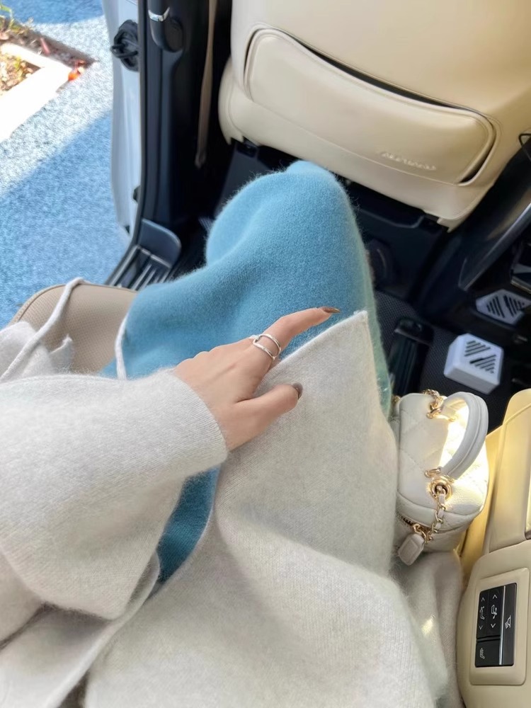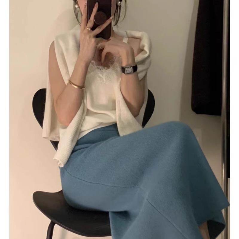 모조 너구리 양털 오버 스커트 여성 가을 및 겨울 높은 허리 엉덩이 리프팅 우아한 슬림 무릎 스커트 여성용 스커트 겨울 스웨터스토어 가기