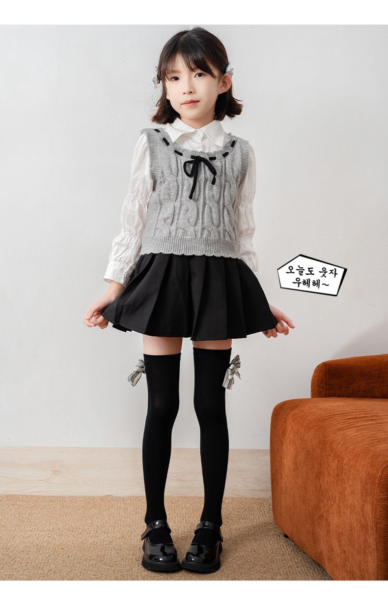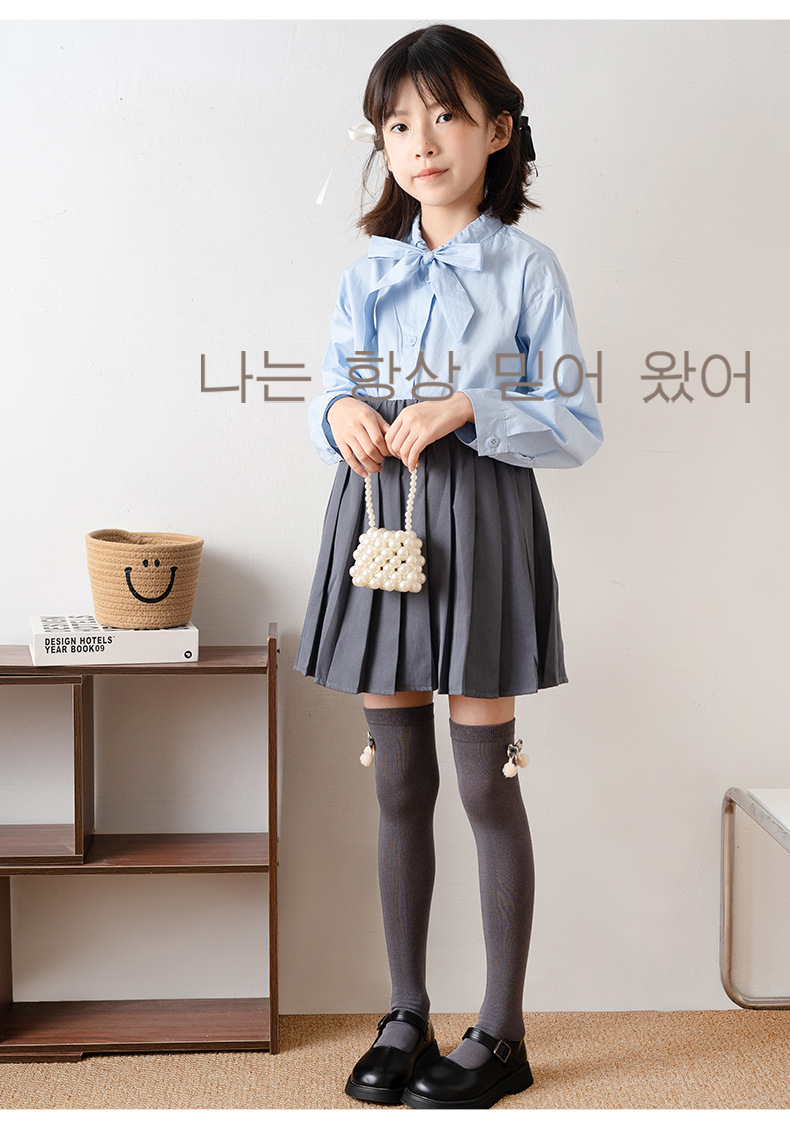 24 년 가을 새로운면 안티 필링 모피 볼 활 어린이 스타킹 소녀 스트레이트 튜브 무릎 양말