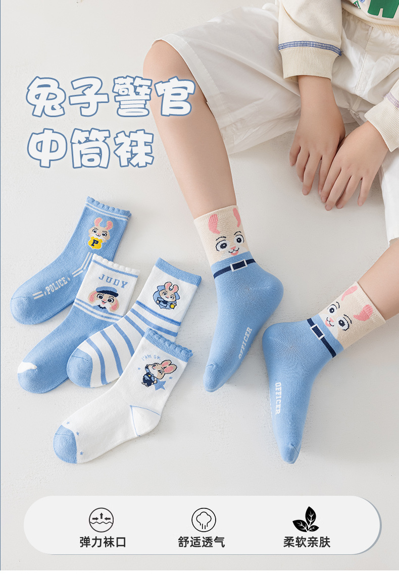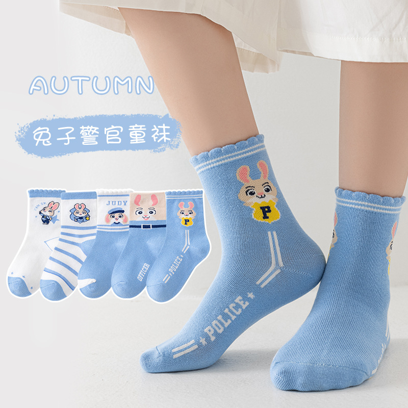 어린이 양말 봄과 가을 중간 배럴 만화 토끼 경찰 주디 소녀 아기 어린이 가을과 겨울 학생 양말 도매