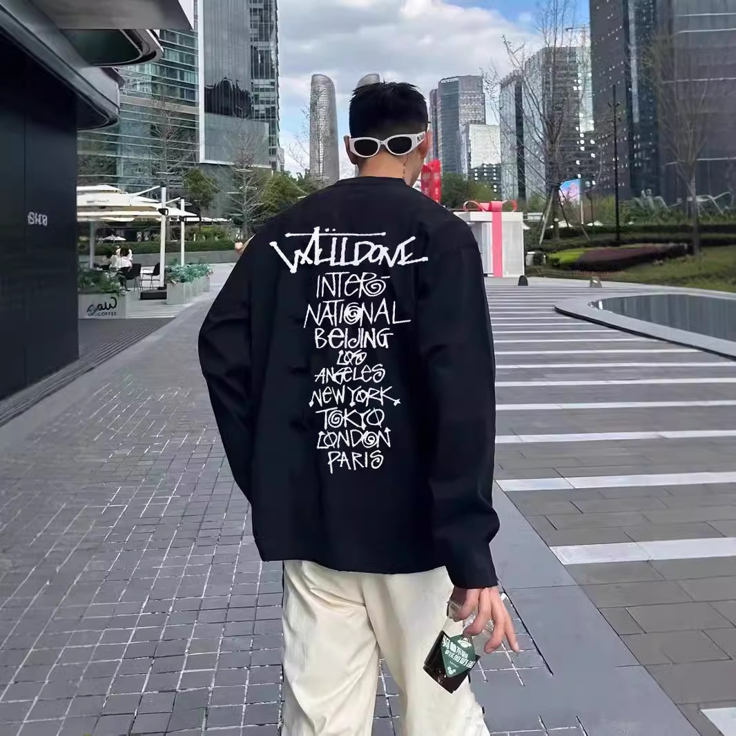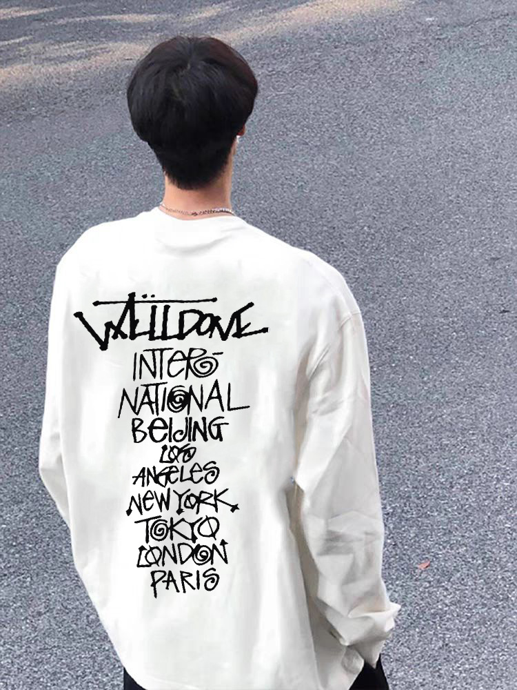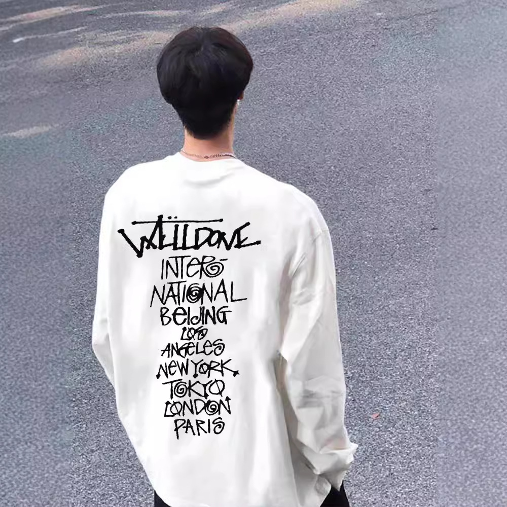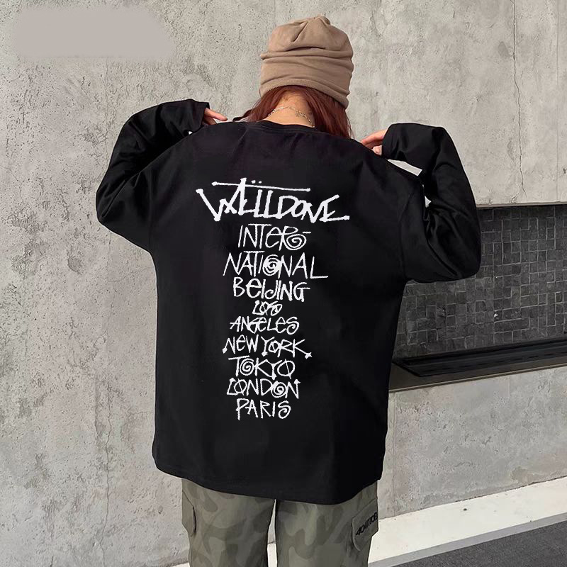 WE11DONE 봄과 가을 새로운 패션 트렌디 브랜드 다시 재미 인쇄 된 긴 소매 티셔츠 남성과 여성 연인베이스 셔츠스토어 가기