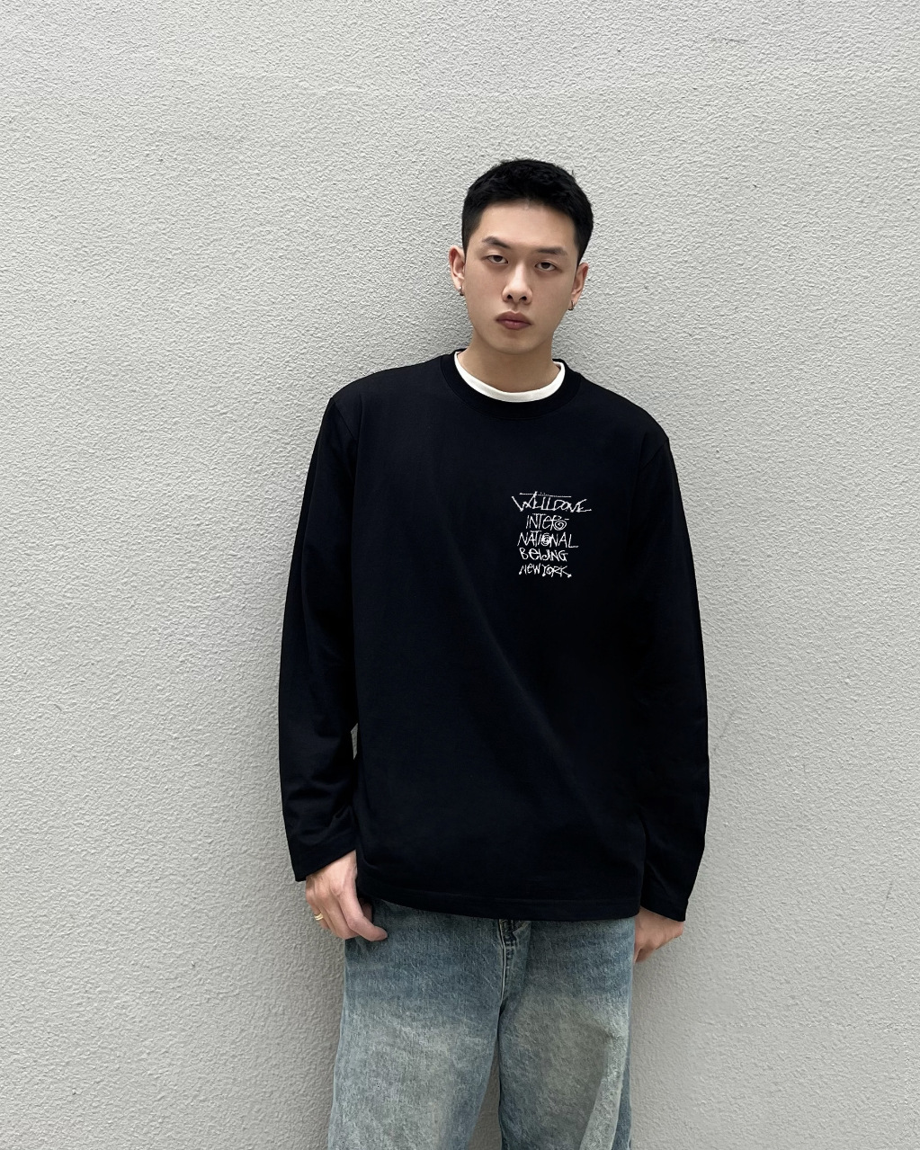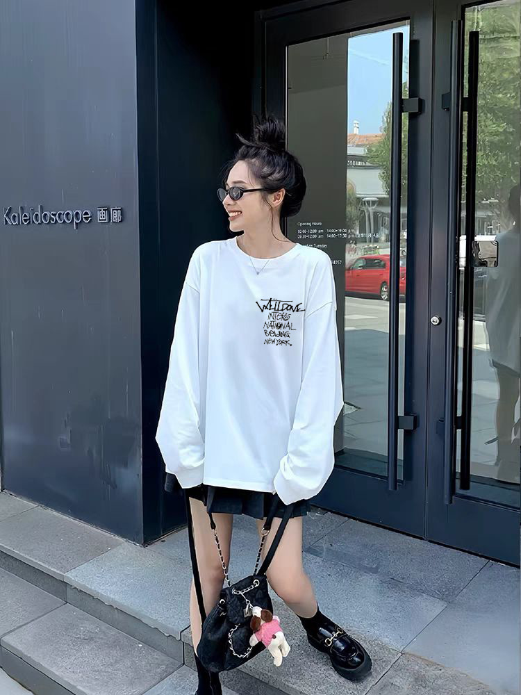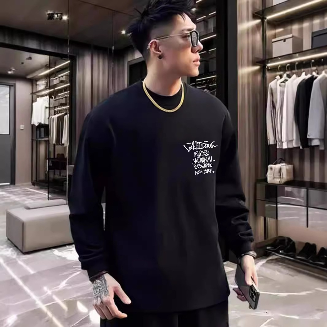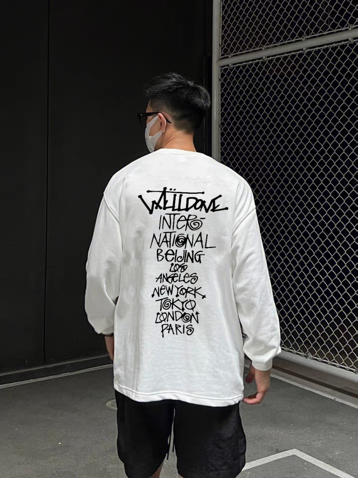 WE11DONE 봄과 가을 새로운 패션 트렌디 브랜드 다시 재미 인쇄 된 긴 소매 티셔츠 남성과 여성 연인베이스 셔츠스토어 가기