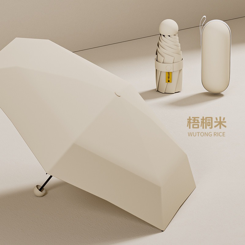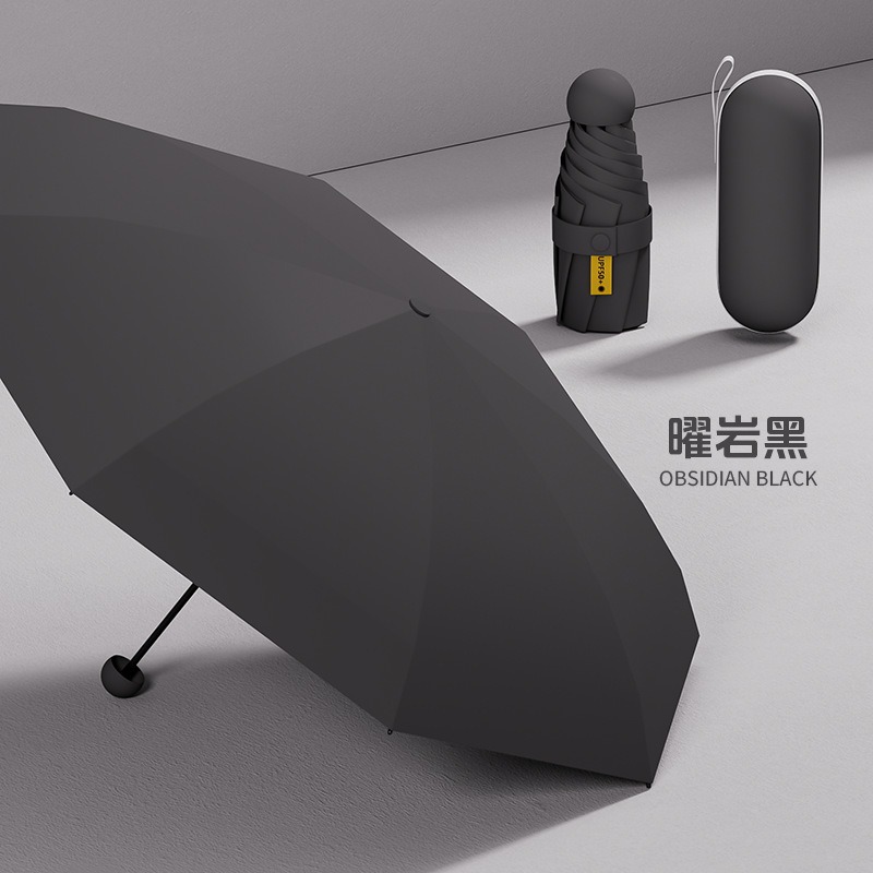 비는 우산을 즐긴다 여성 고급 감각 캡슐 우산 블랙 고무 선 스크린 우산 써니 비 듀얼 사용 UV 보호 햇살 우산