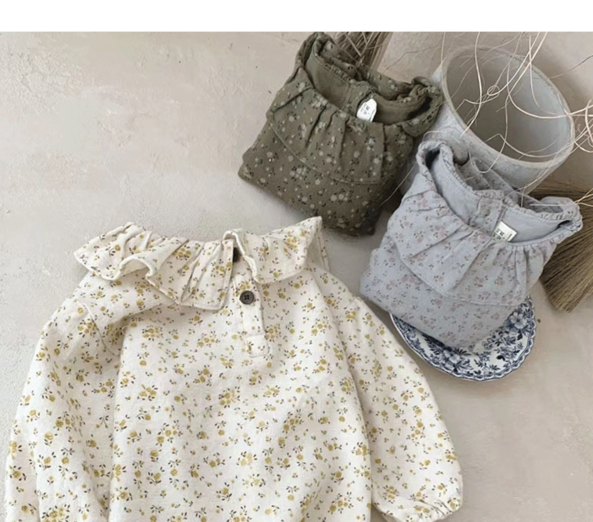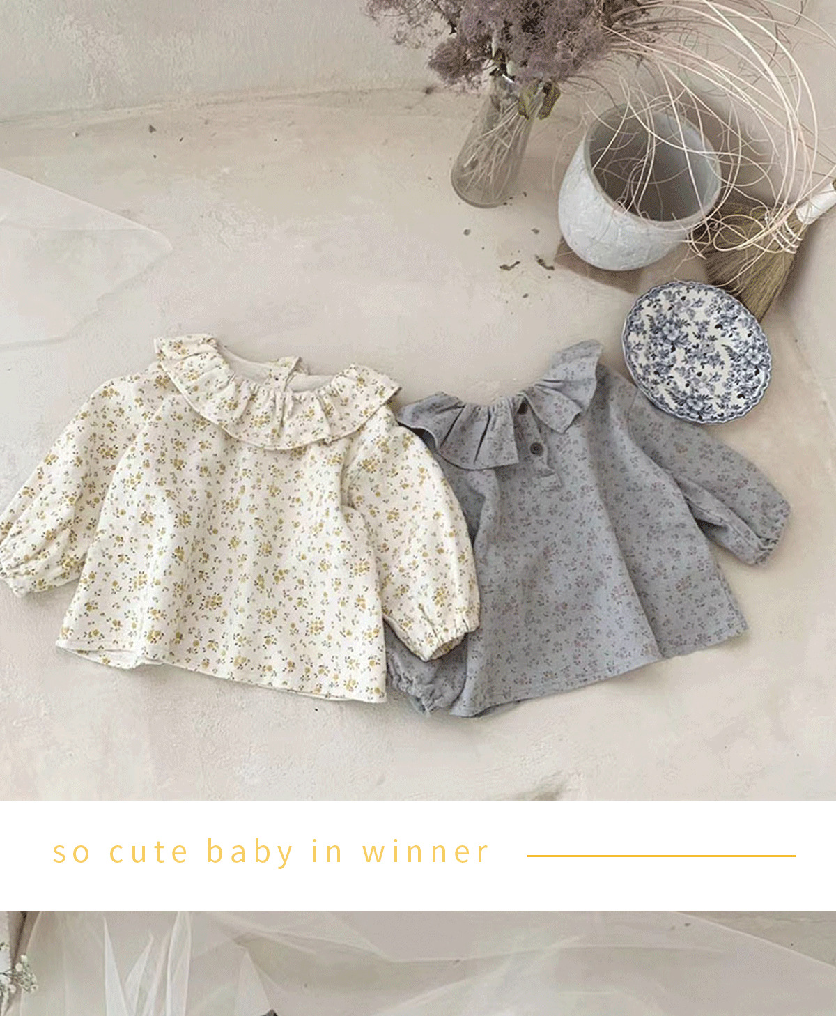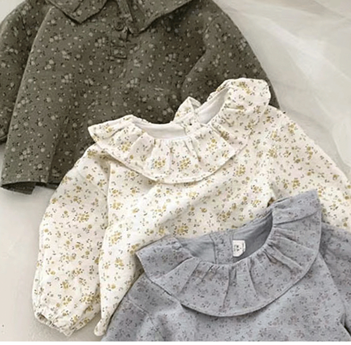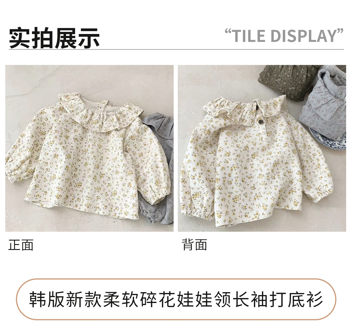 한국 스타일 봄과 가을 아기 소녀의 부드러운 꽃베이스 셔츠 긴 소매 인형 칼라 느슨한 귀여운 어린이 셔츠스토어 가기