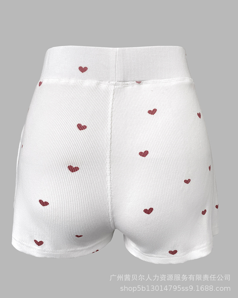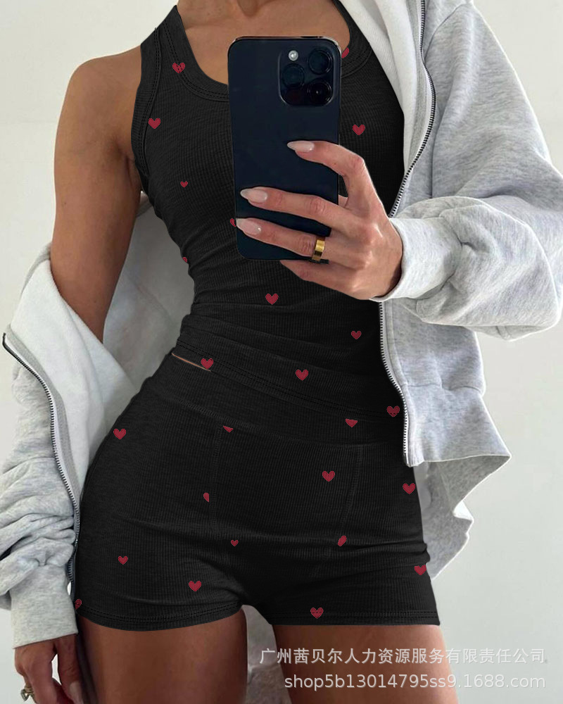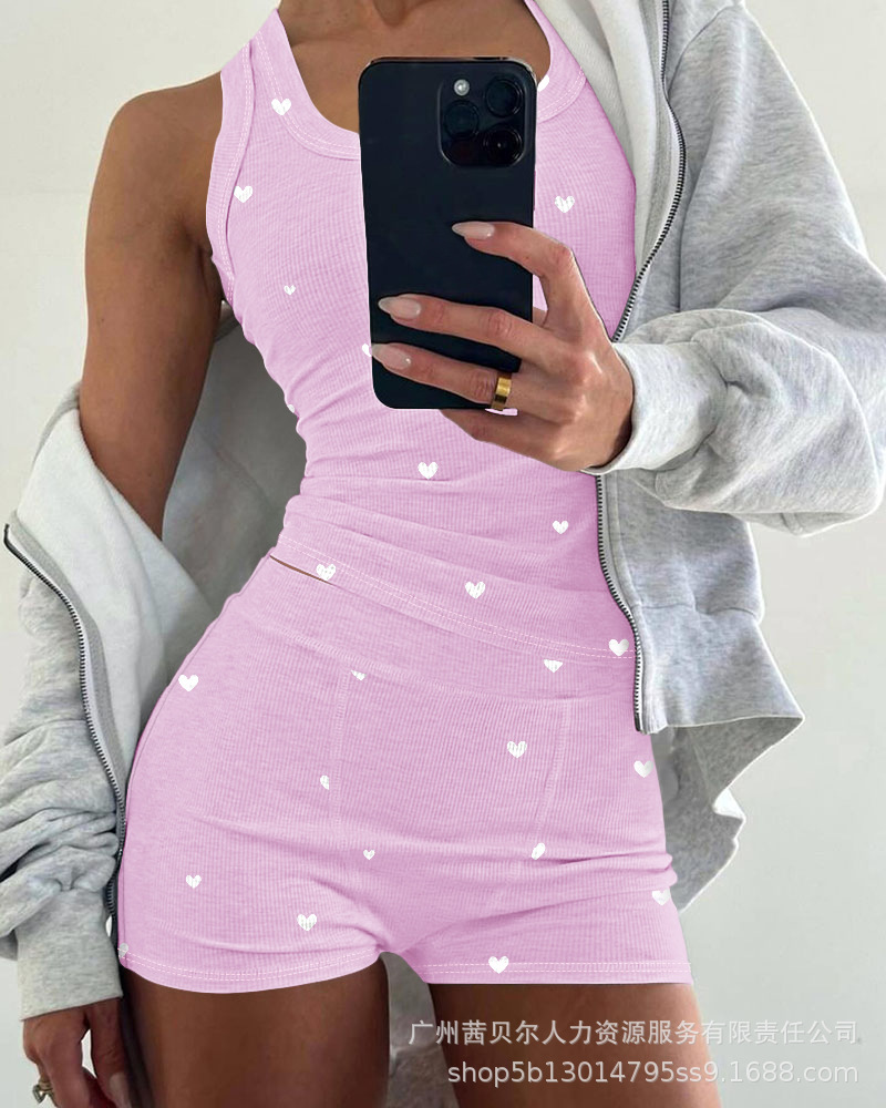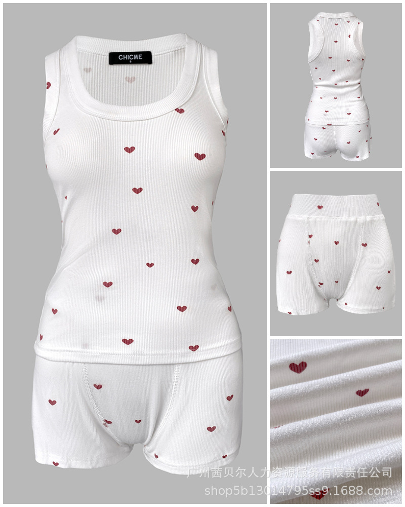 LZR18849 라이트 그레이 U 칼라 리브 조끼 반바지 세트 2 피스 세트