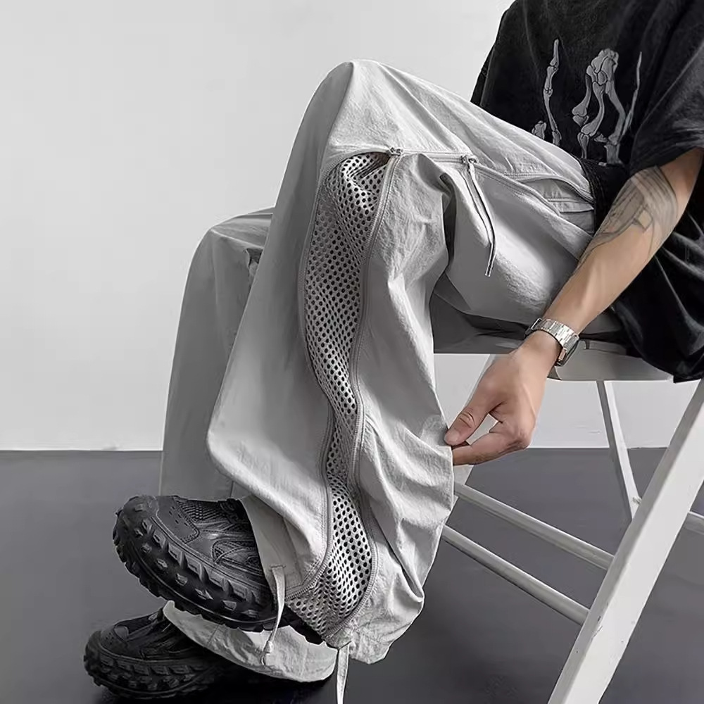 冲锋裤子男2024秋季新款薄款速干防水降落伞兵裤宽松直筒休闲长裤