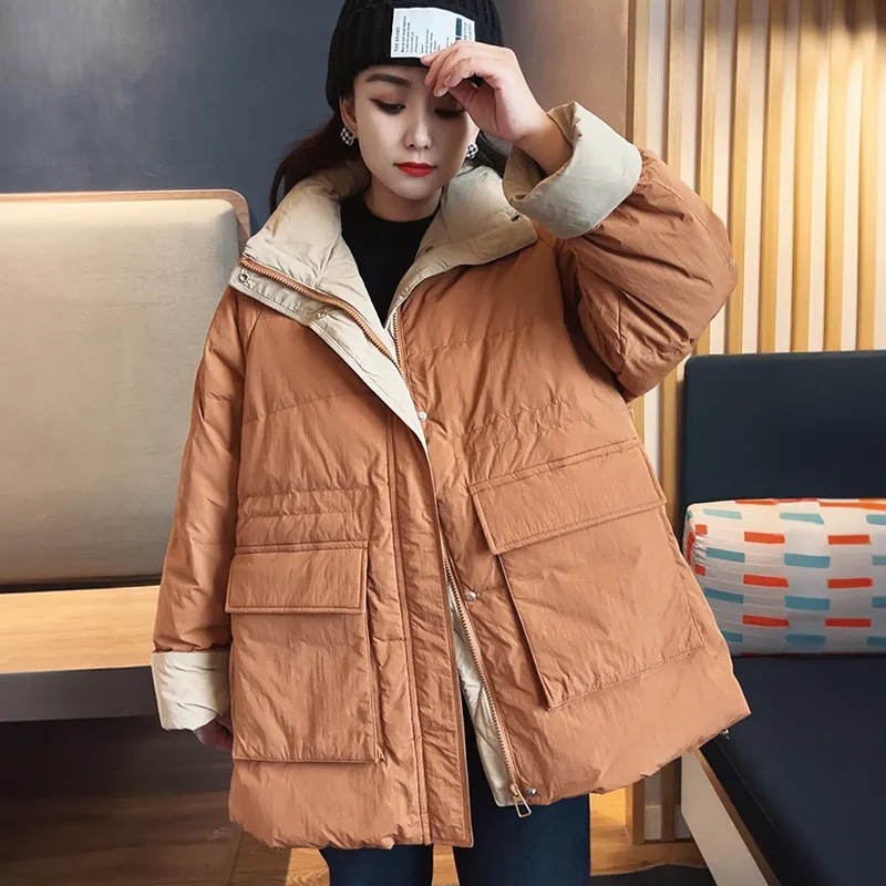 플러스 사이즈 안티 시즌 컬러 매칭 다운 재킷 길이 200kg 뚱뚱한 자매 오리 세트 2024 년 새로운 남성과 여성의 느슨한스토어 가기