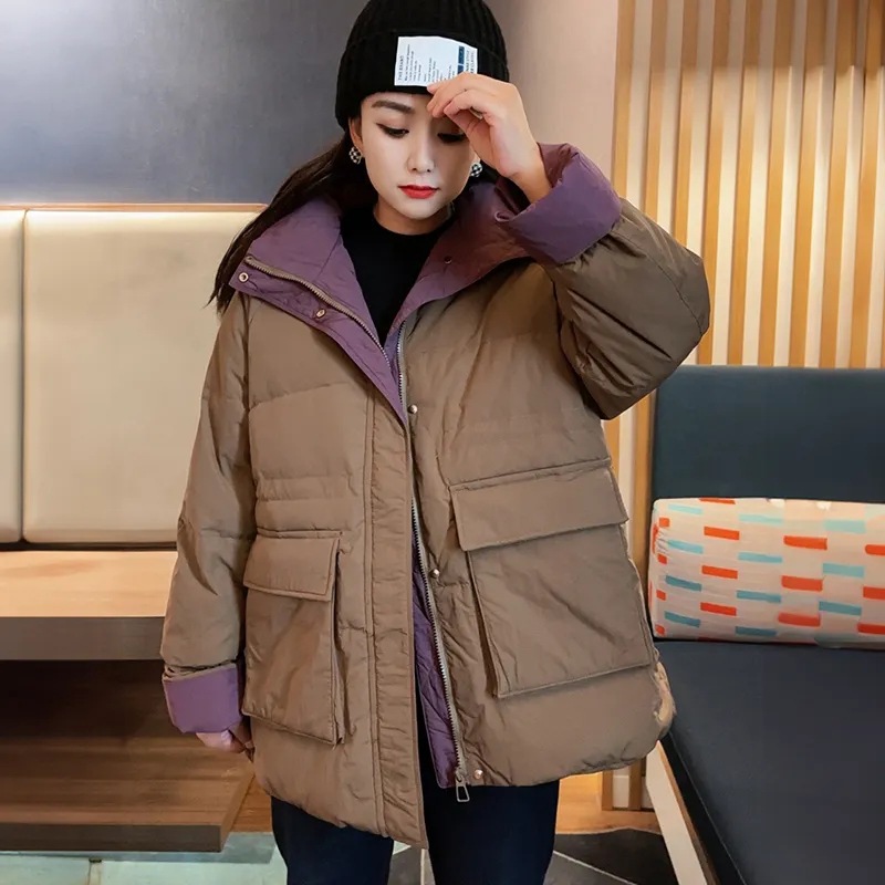 플러스 사이즈 안티 시즌 컬러 매칭 다운 재킷 길이 200kg 뚱뚱한 자매 오리 세트 2024 년 새로운 남성과 여성의 느슨한