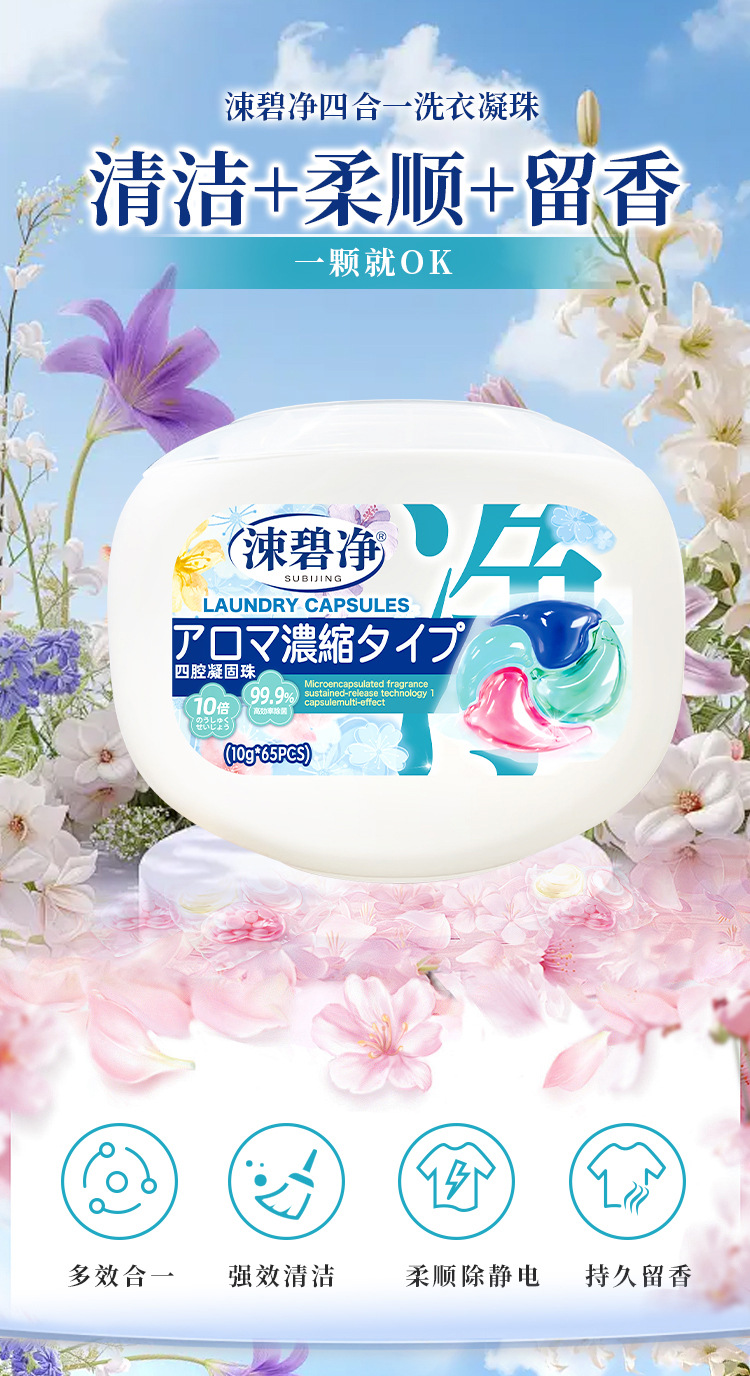 4-in-1 세탁볼, 오래 지속되는 향기, 섬유유연제, 오염제거 세탁세제, 일본산 탈취 세탁볼