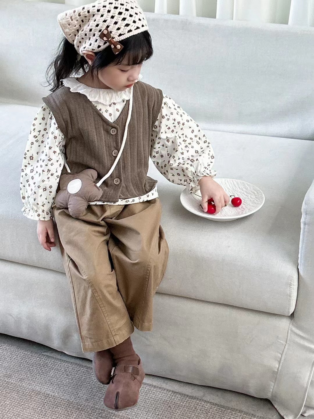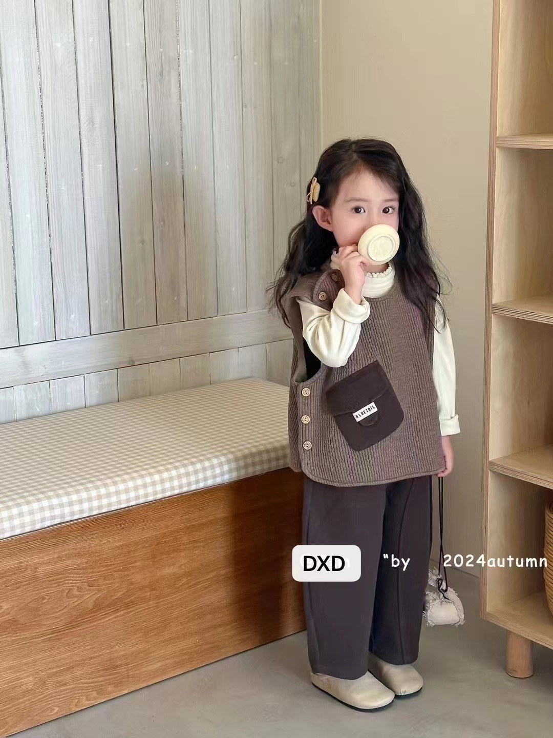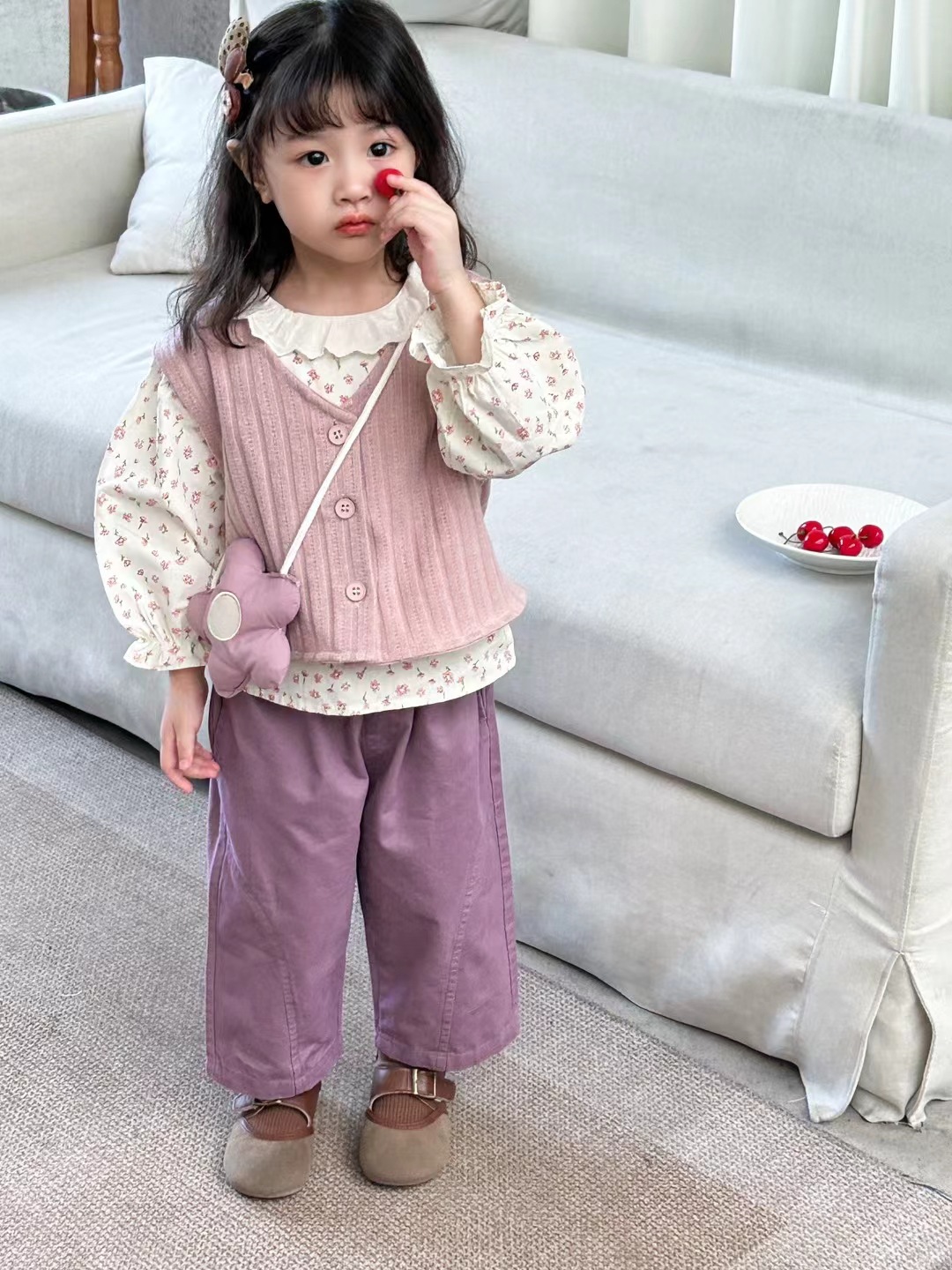 2024新款大麦马甲打底长裤三件套春秋款套装长袖衬衣马甲背心套
